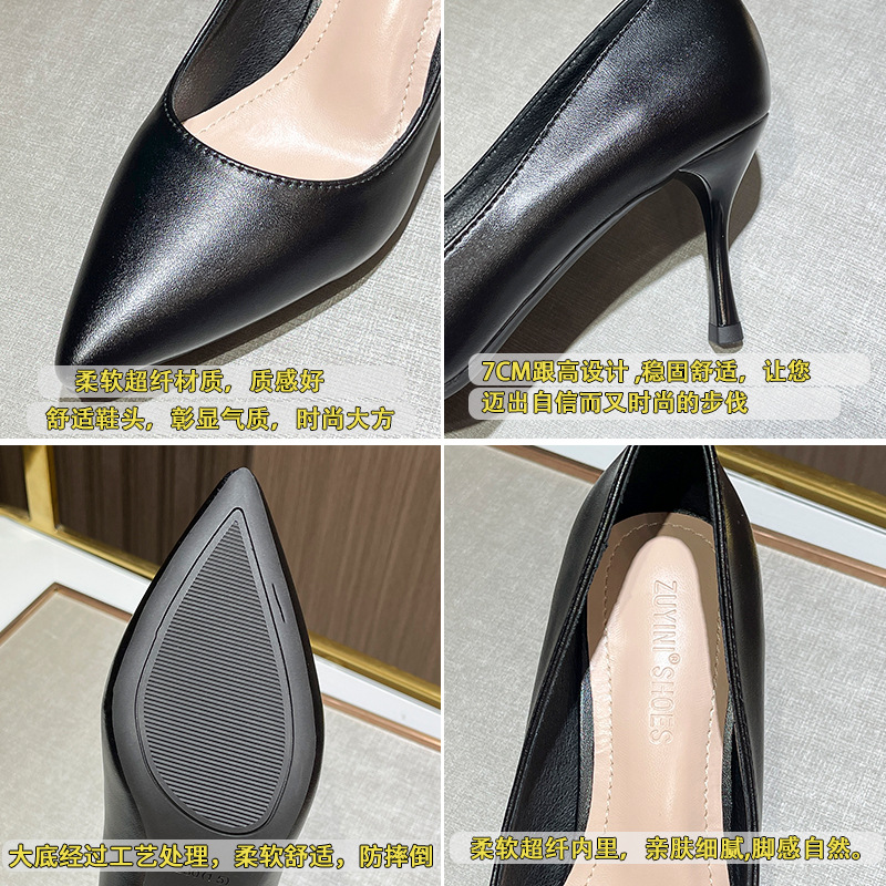 누드 하이힐 여성용 2023 신상품 직장 프랑스 누드 뾰족한 우아한 신발 봄과 가을 얕은 입 작업 신발