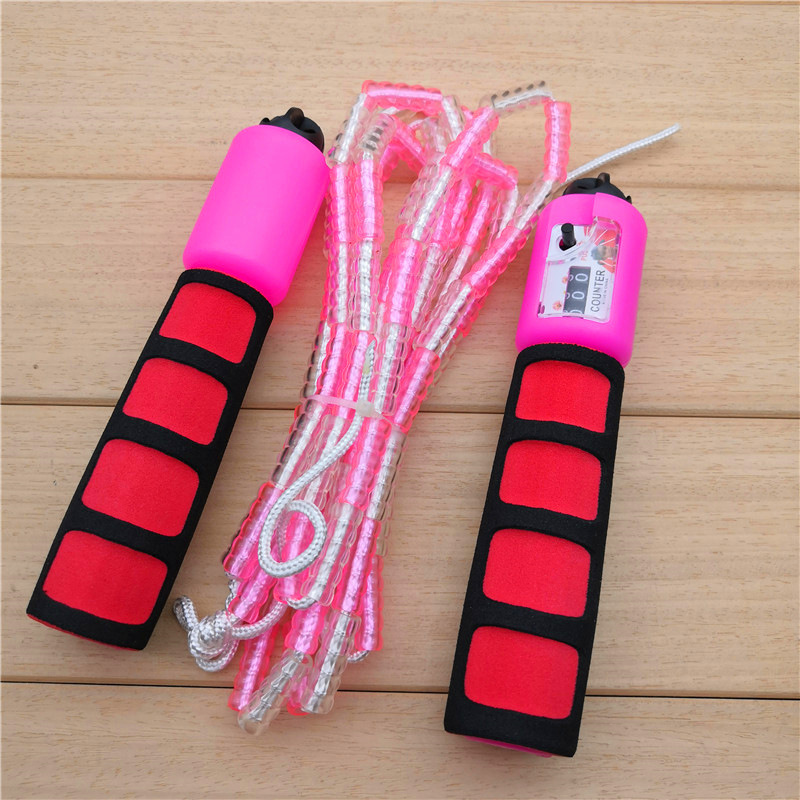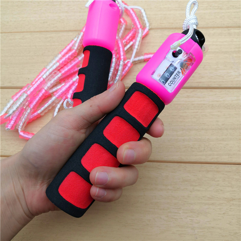 成人儿童健身运费跳绳PVC袋装塑料海绵手柄珠子跳绳健身用品2.8米