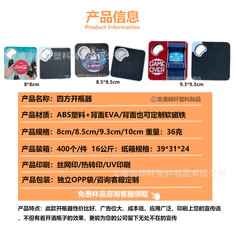공장 스팟 플라스틱 사각 코스터 병따개 상업용 맥주 병 다기능 오프너 KTV 바 병따개