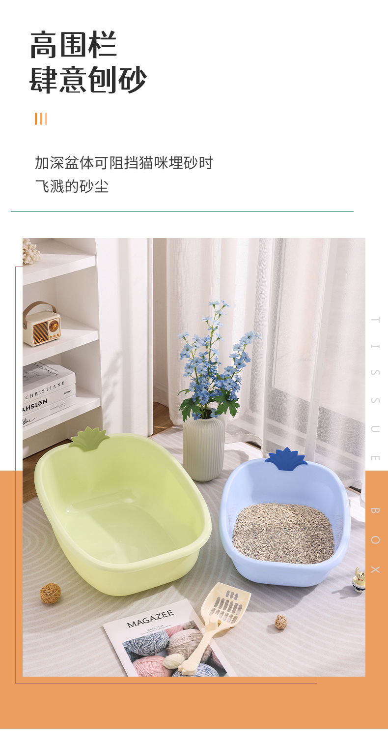 반밀폐형 심플 고양이 화장실, 청소가 용이하고 넓은 공간, 높이가 높아 모래 흩날림 방지, 고양이 청소용품, 고양이 화장실