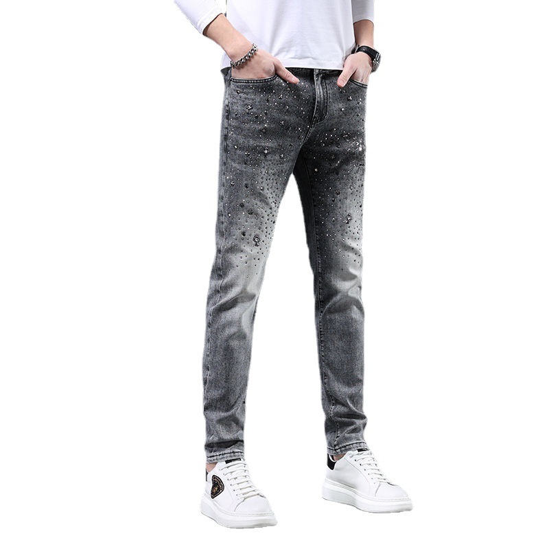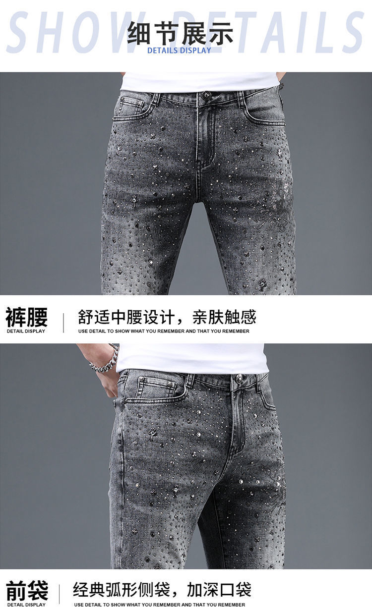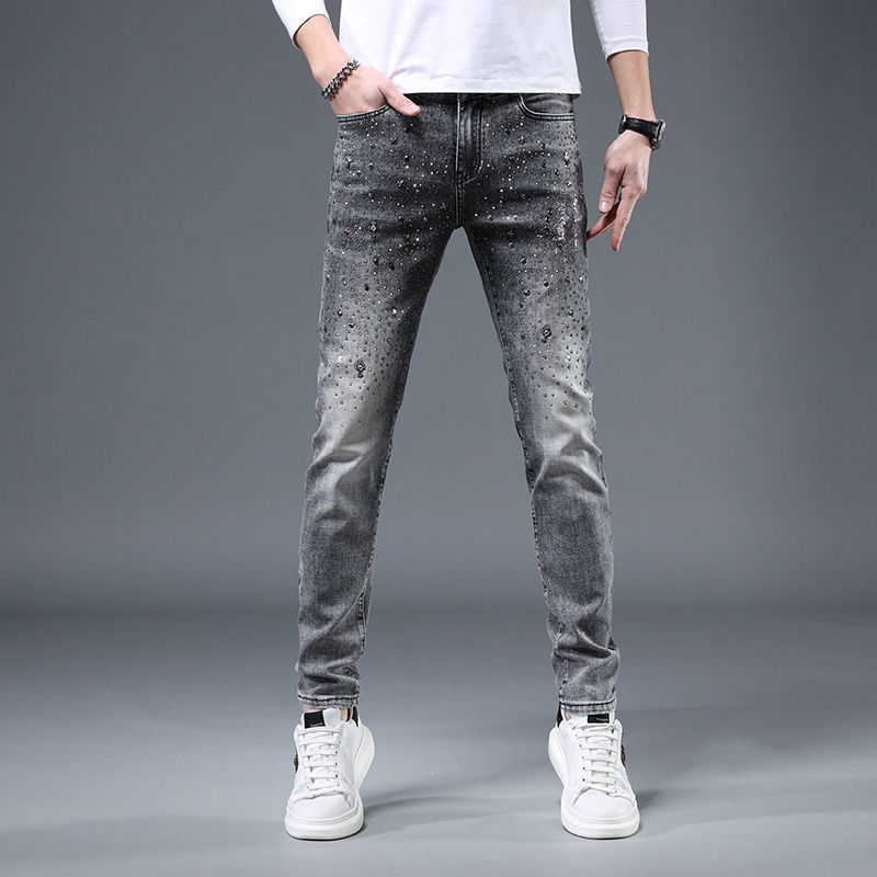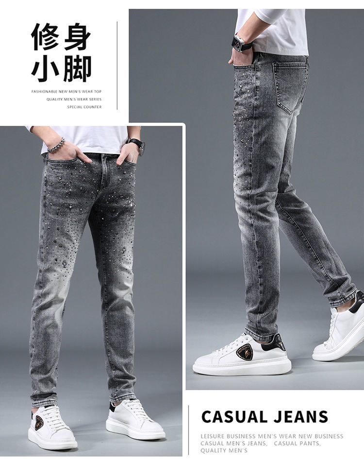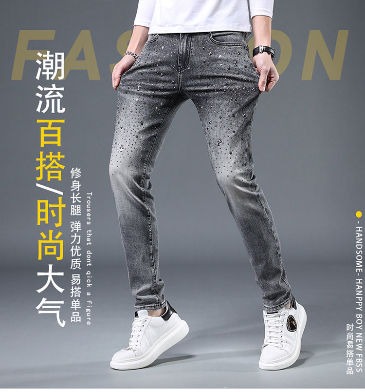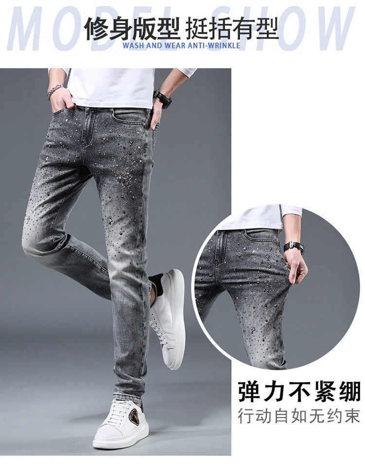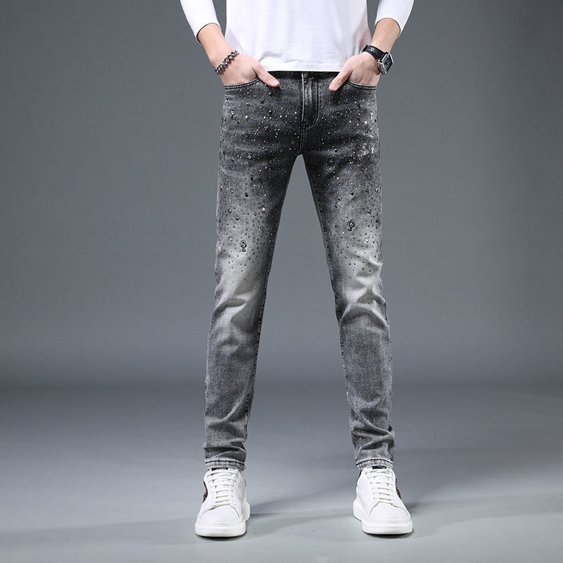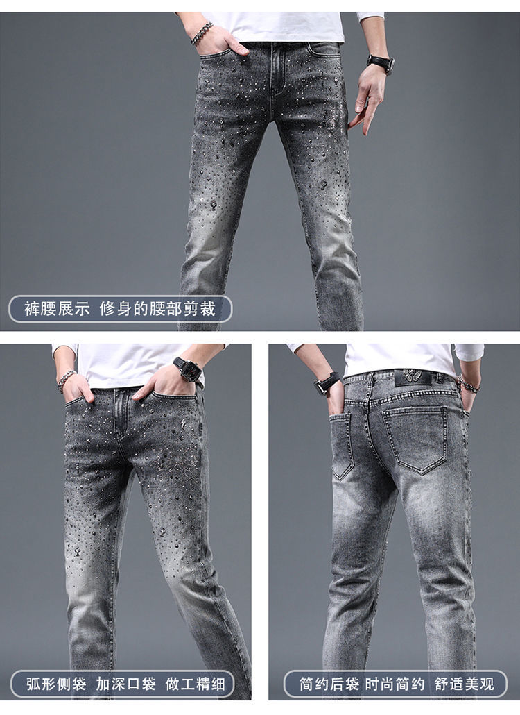 유러피언 스테이션 하이엔드 트렌디 브랜드 윌로우 네일 핫 드릴링 2022 봄과 여름 새로운 남성 슬림핏 청소년 올매치 패션 데님 바지