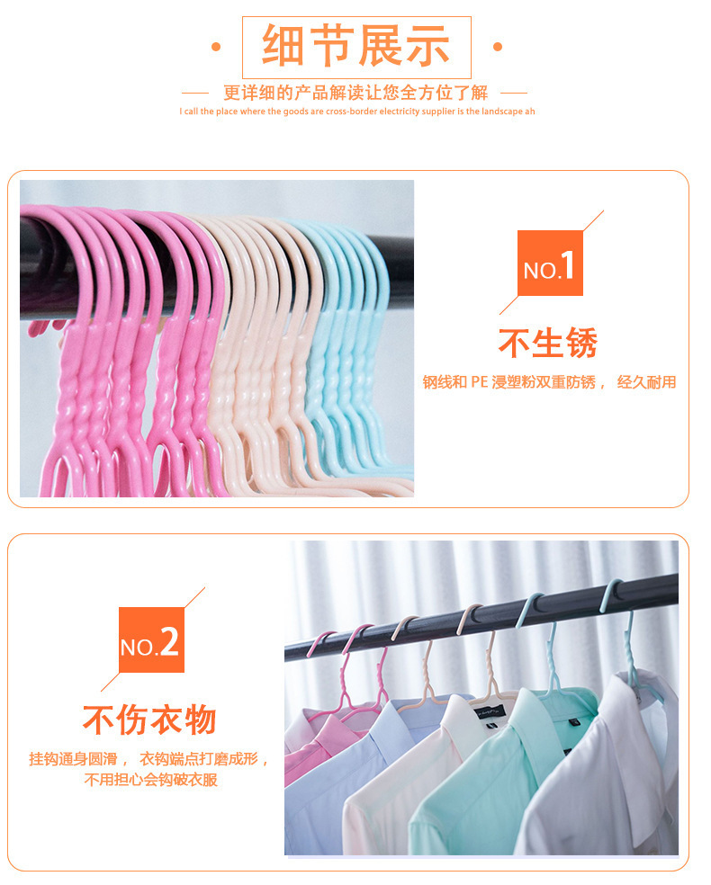 가정용 옷걸이, 두꺼운 무자국 플라스틱 코팅 옷걸이, 기숙사 옷걸이, 침실 발코니 옷걸이, 옷걸이 도매