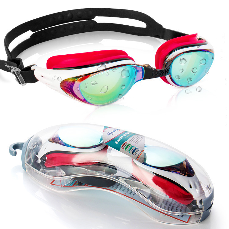 대형 프레임 수영 고글이있는 웨이브 전문 도금 편안한 HD 방수 김서림 방지 수영 고글 남성과 여성을위한