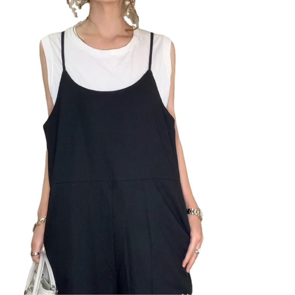 재고 2024 여름 일본 스타일 심플 레트로 슬리밍 올 매치 캐주얼 와이드 레그 스트랩 바지 루즈 점프 수트