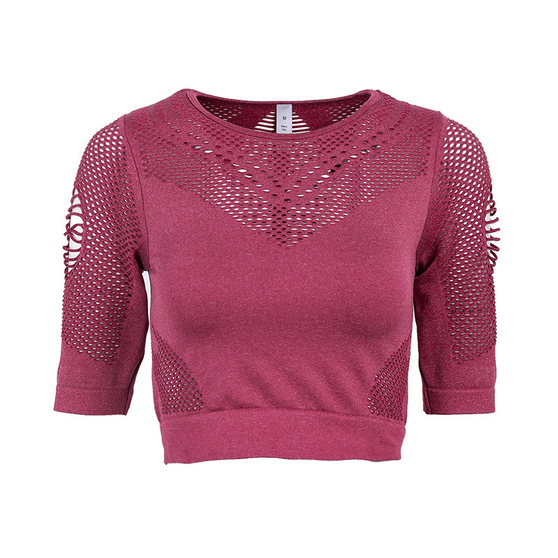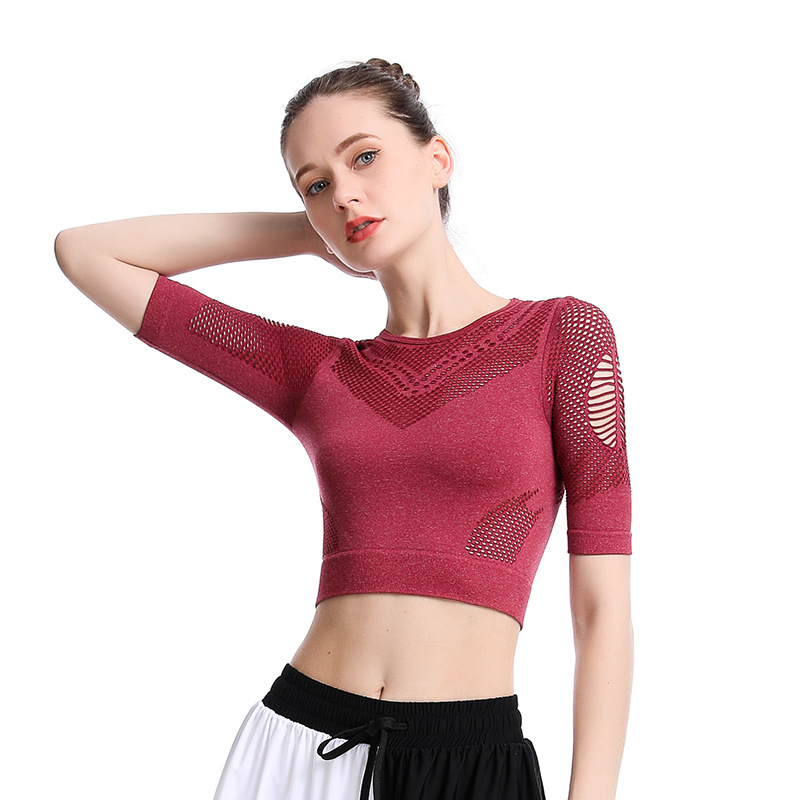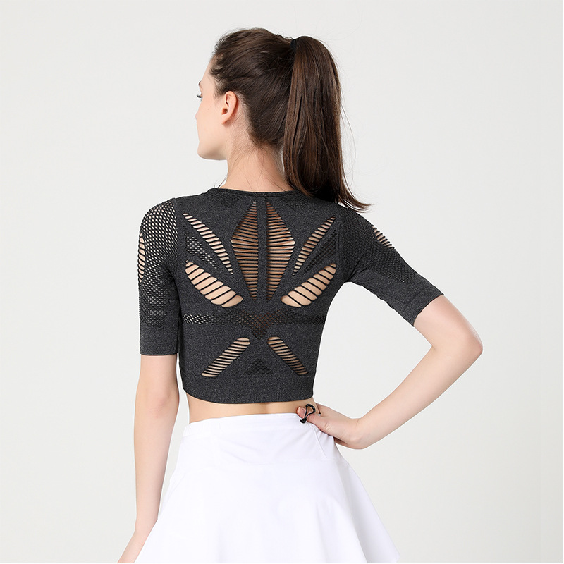 ZAXU 여름 3D 심리스 중공 짠 스포츠 조끼 슬림핏 하프 슬리브 배꼽 반팔 여성 피트니스웨어
