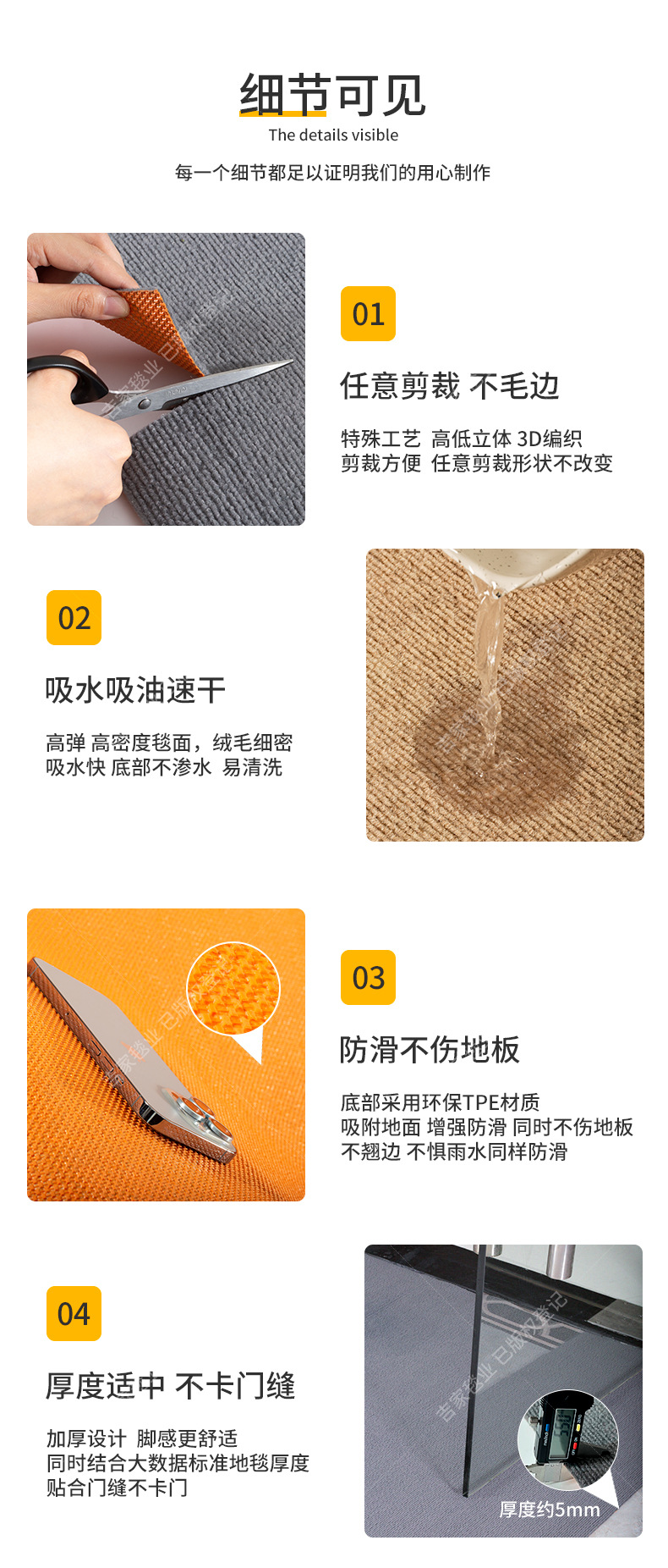 TPE 카펫 바닥 매트 홈 주방 베이 창 욕실 흡수성 바닥 매트 상업용 사무실 계단 미끄럼 방지 카펫