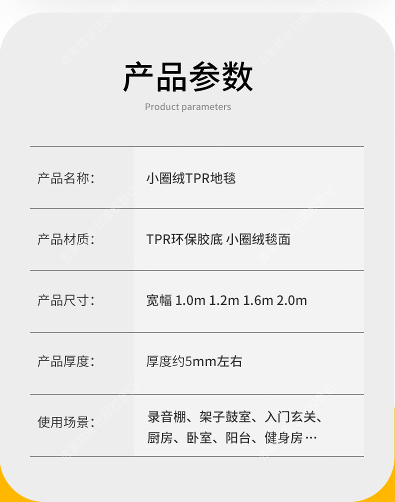 TPE 카펫 바닥 매트 상업적인 가정 침실 침실 사무실 계단 복도 큰 지역 가득 차있는 방음