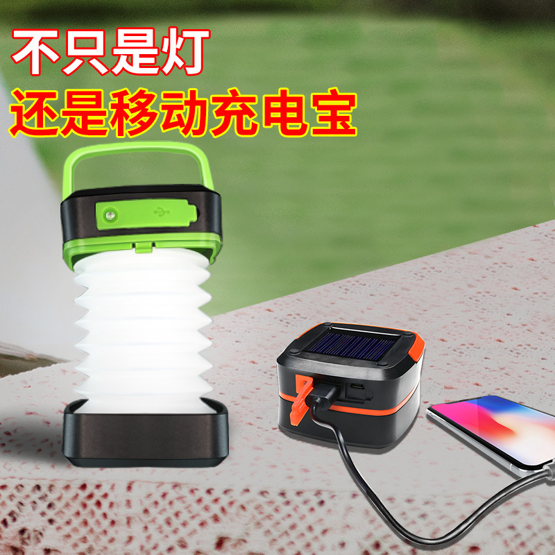 국경 간 전문 태양열 캠핑 램프 LED 다기능 충전식 야외 휴대용 램프 휴대용 개폐식 텐트 램프