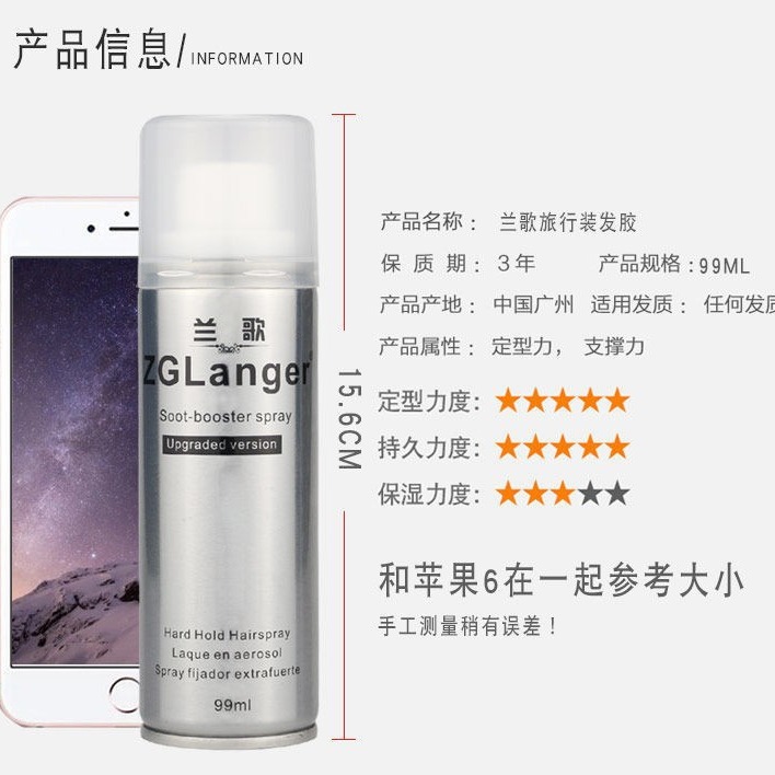 99ml 여행 편리한 스프레이 스타일링 드라이 접착제 항공기 고속철도 남성과 여성 오래 지속되는 푹신한 스타일링 스프레이