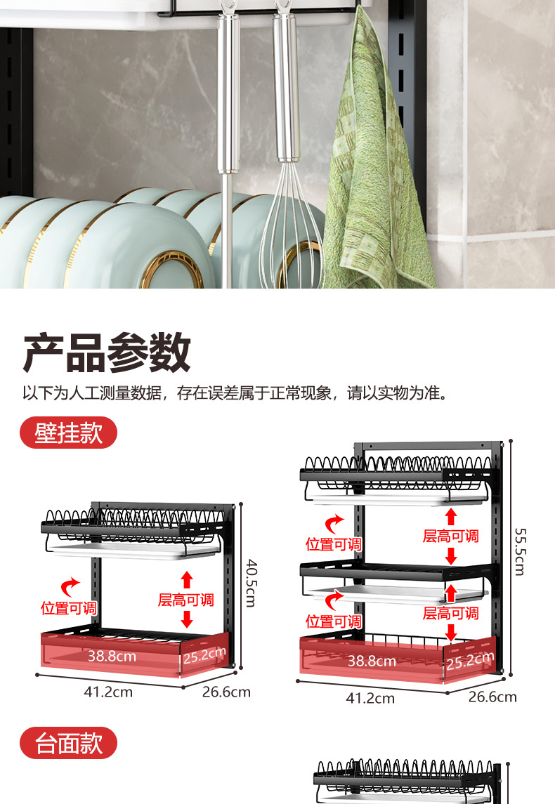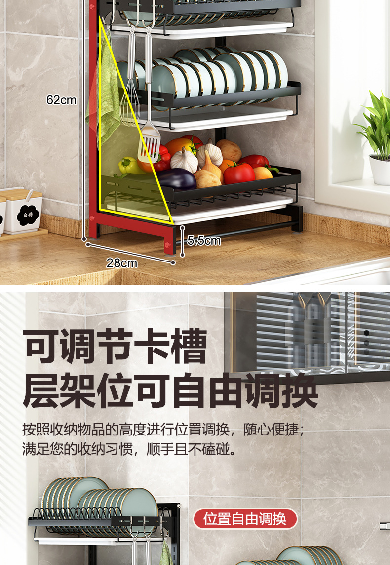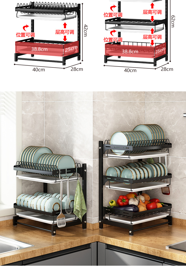 조리대 2 단 접시 랙 + 커터 도마 랙