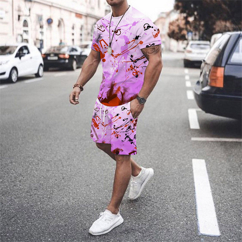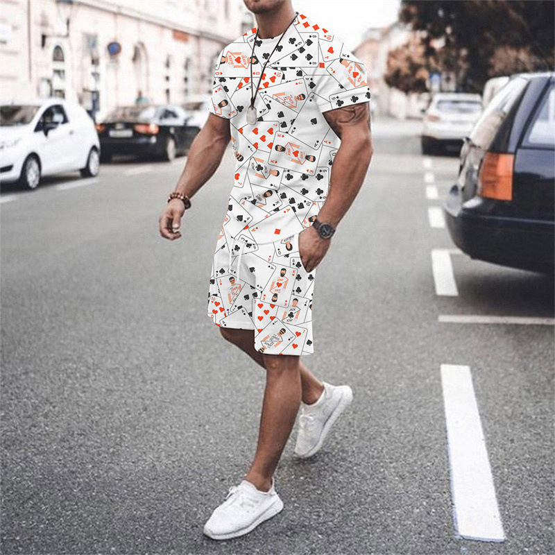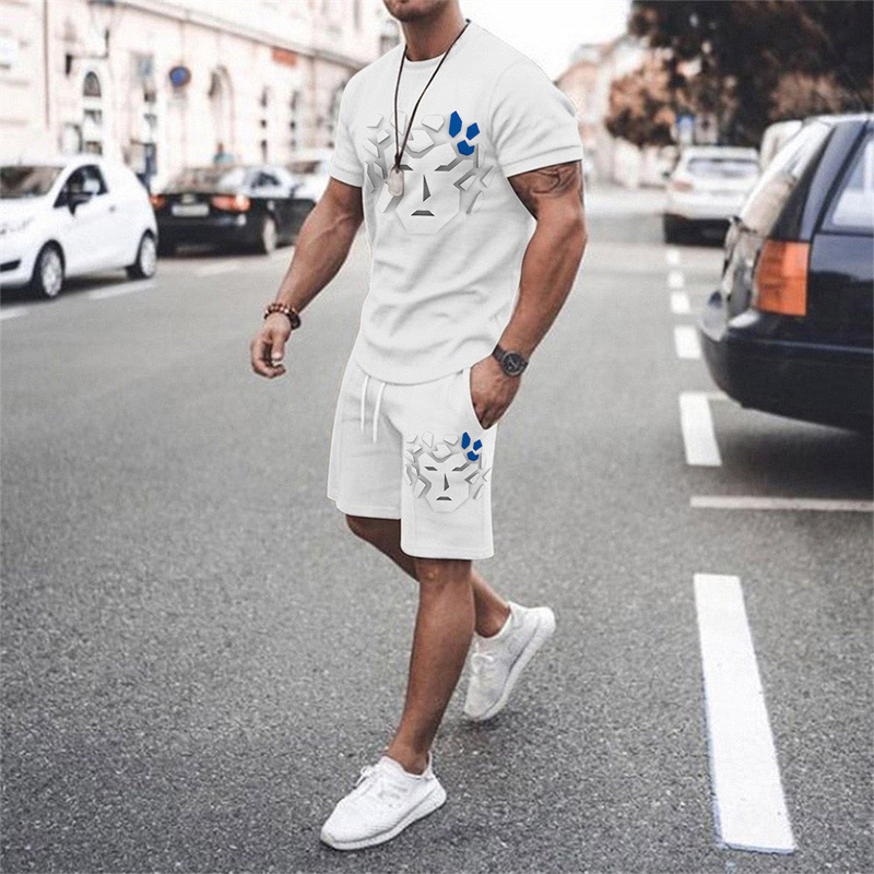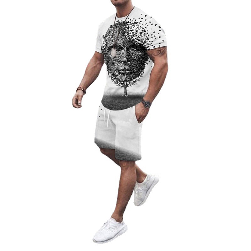 대외 무역 2023 여름 새로운 남자의 라운드 넥 반팔 티셔츠 세트 청소년 패션 비치 팬츠 투피스 세트