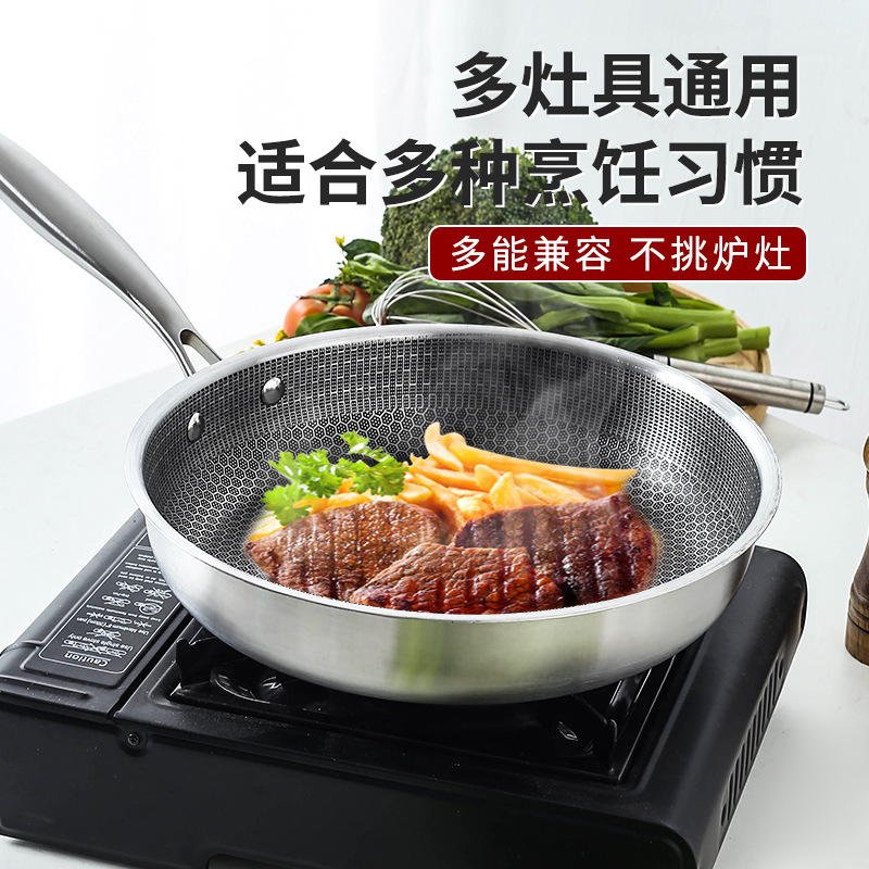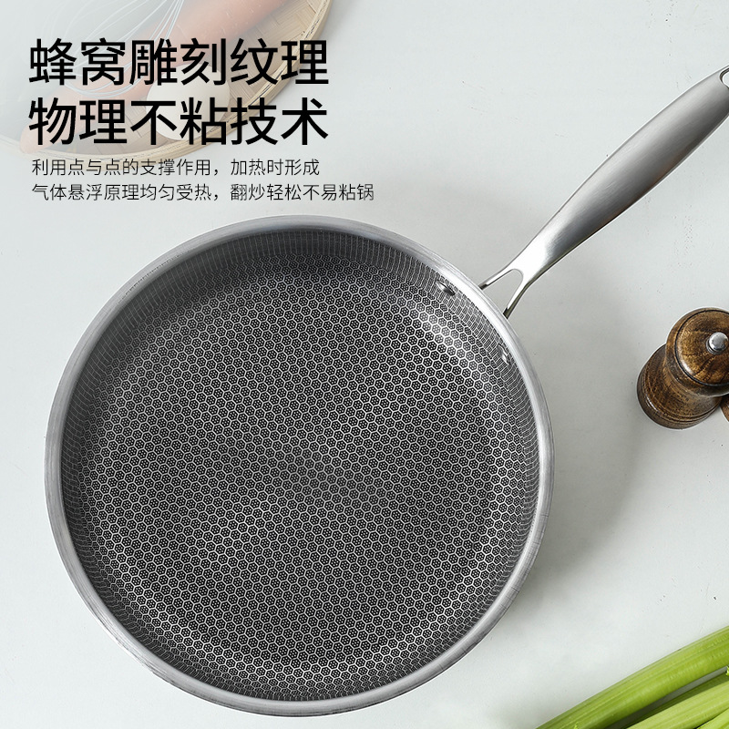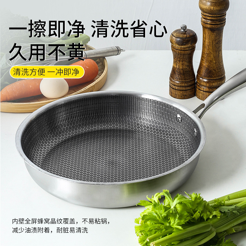 스테인레스 스틸 전체 화면 벌집 프라이팬 가정용 계란 튀김 스테이크 팬케이크 청소하기 쉬운 붙지 않는 팬 공장 도매