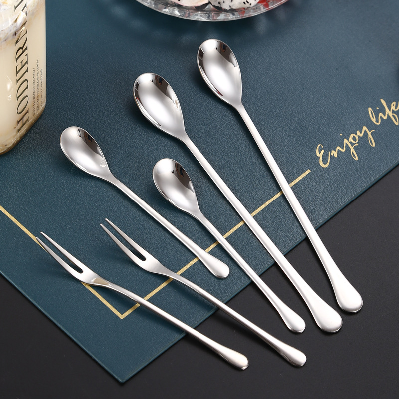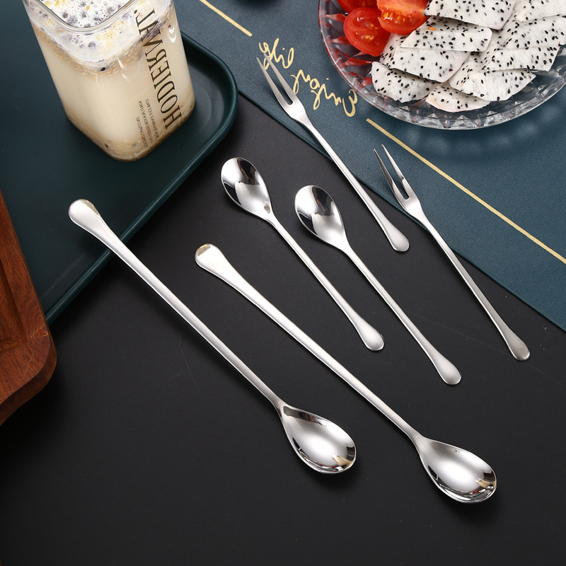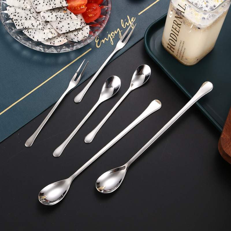 아마존 304 스테인레스 스틸 스푼 디저트 커피 조미료 꿀 스푼 과일 포크 바 긴 손잡이 믹싱 스푼