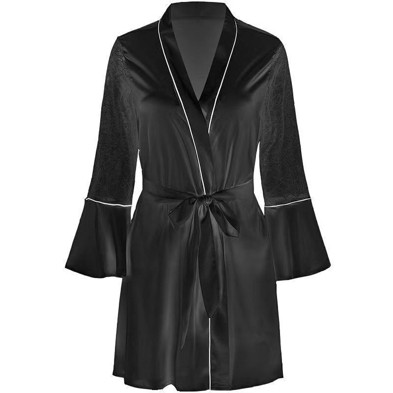 플레어 슬리브 레이스 새틴 나이트가운(상품번호 6012)은 여름에도 밖에서 입을 수 있으며, 목욕가운(상품번호 5002)과 함께 입으면 더욱 날씬해 보일 수 있습니다.