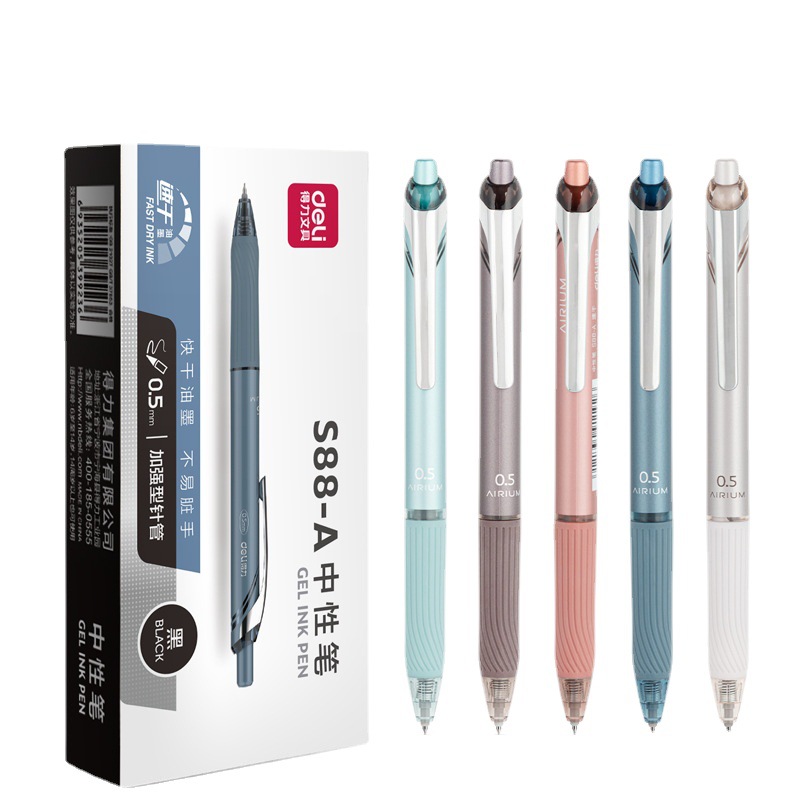 델리 S88-A 속건성 프레스 젤 펜 강화 바늘 튜브 0.5 검정색 금속 펜 클립 문구 사무실 도매
