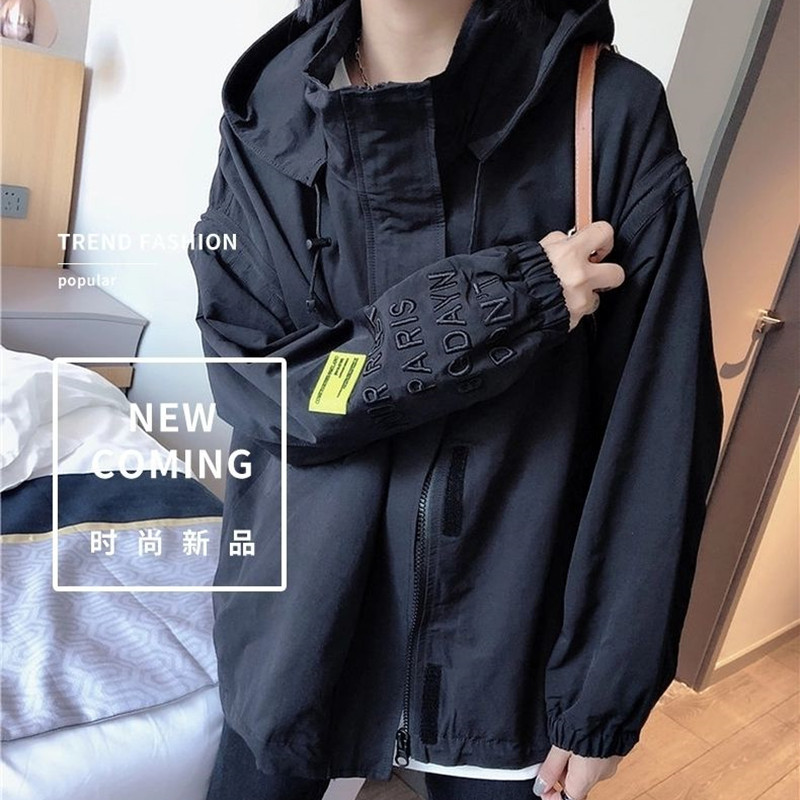여성용 큰 사이즈 자수 야구 점퍼, 봄 가을 유럽풍 루즈핏 패셔너블 스타일의 바람막이 재킷, 안감 있음