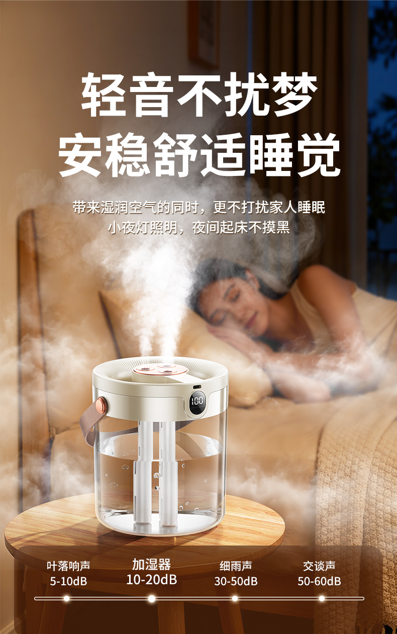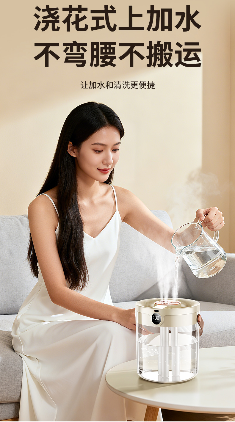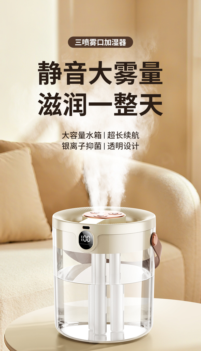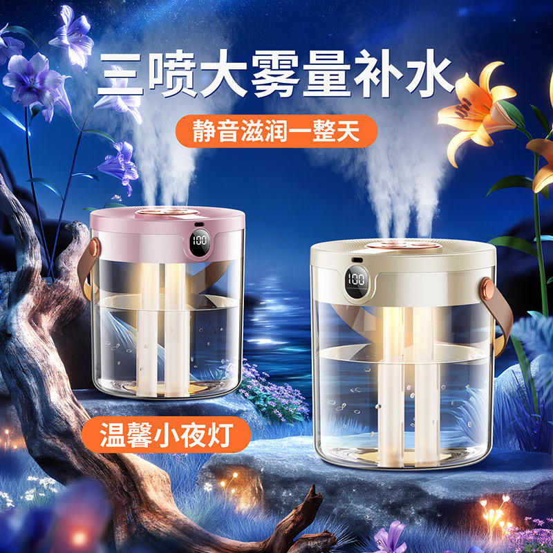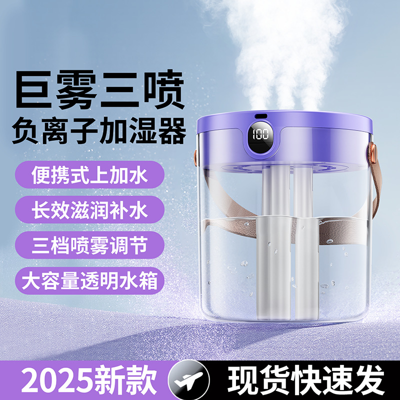 2025년 신형 3중 분사 가습기 대용량 블랙 테크놀로지 음이온 무소음 가습기 USB 가정용 가습기