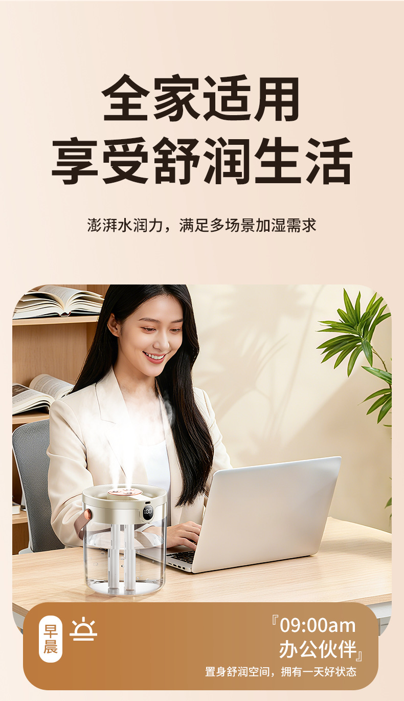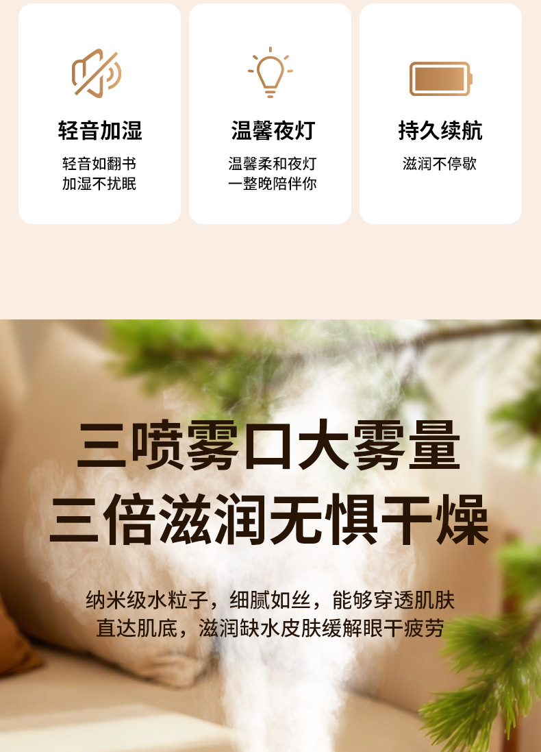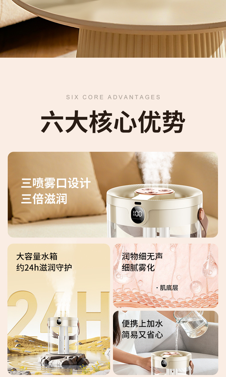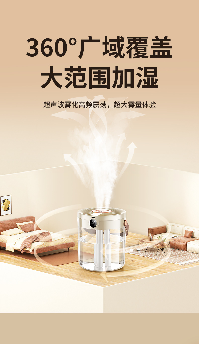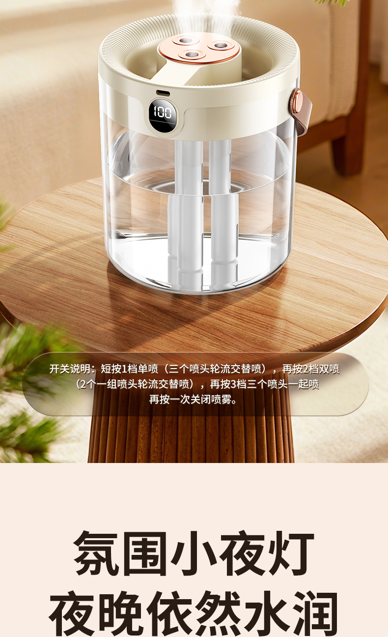 2025년 신형 3중 분사 가습기 대용량 블랙 테크놀로지 음이온 무소음 가습기 USB 가정용 가습기