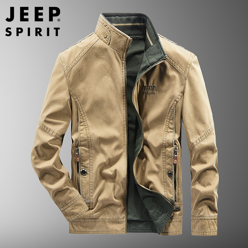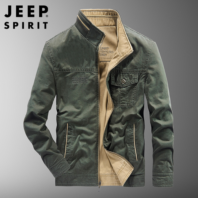 JEEP SPIRIT 남성용 새 재킷 봄과 가을 양면 캐주얼 칼라 단색 재킷 남성용