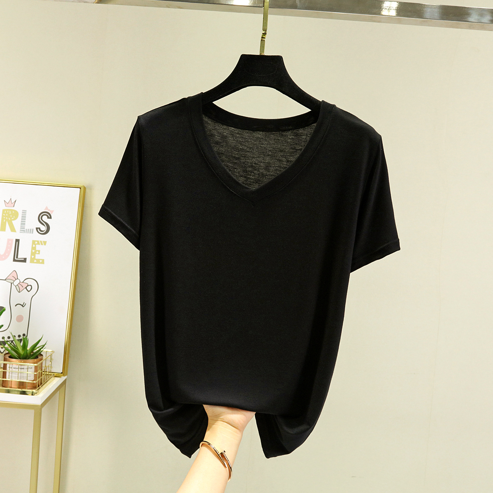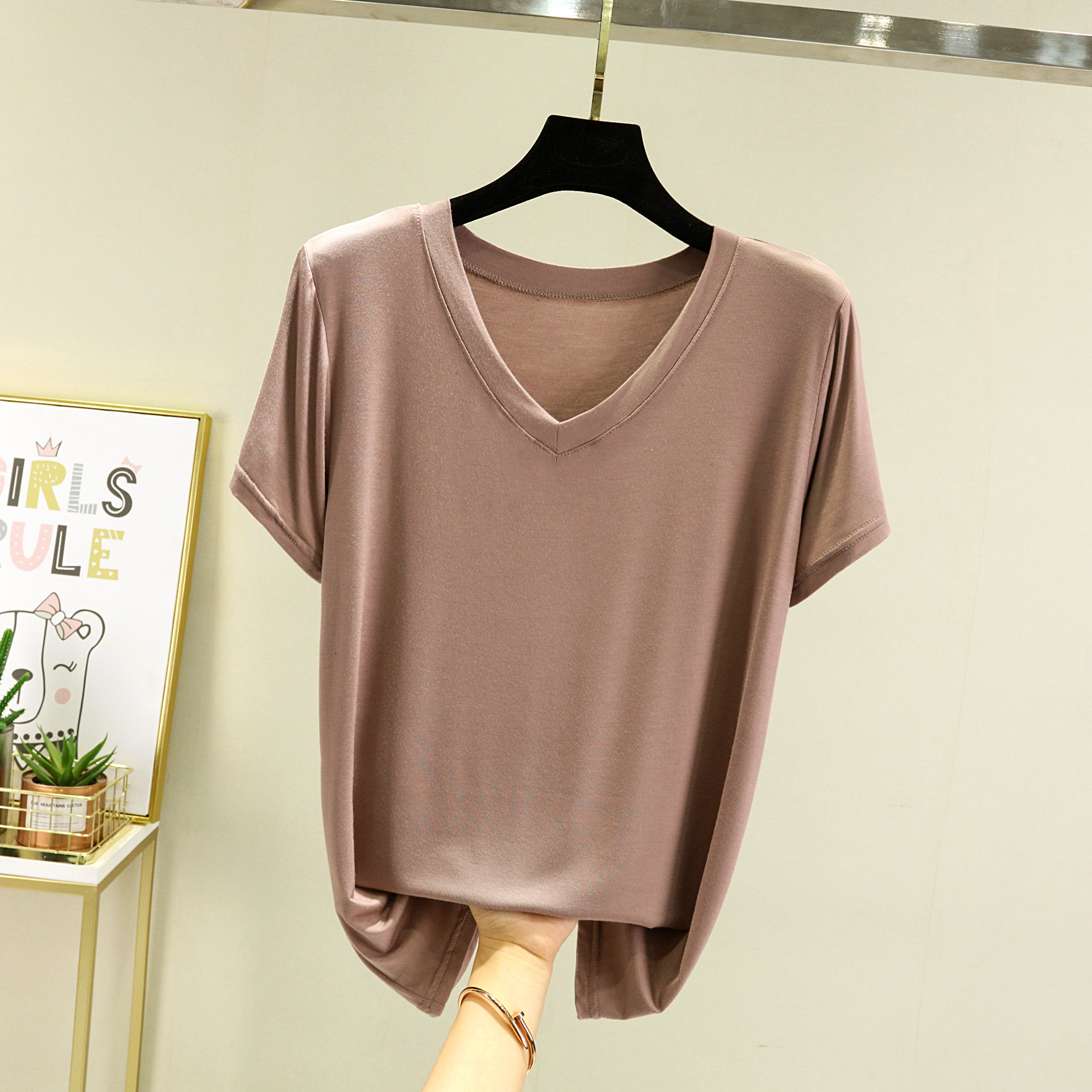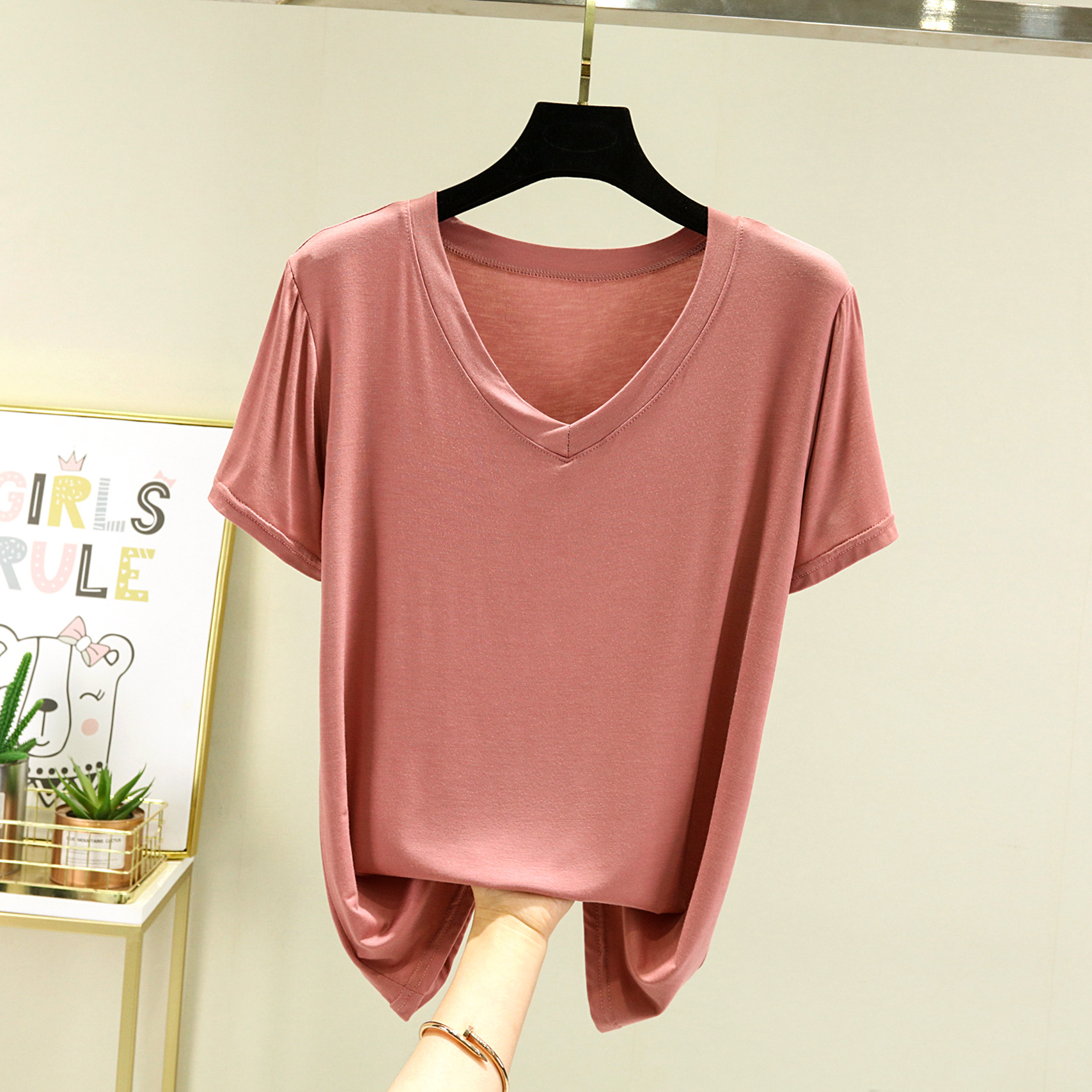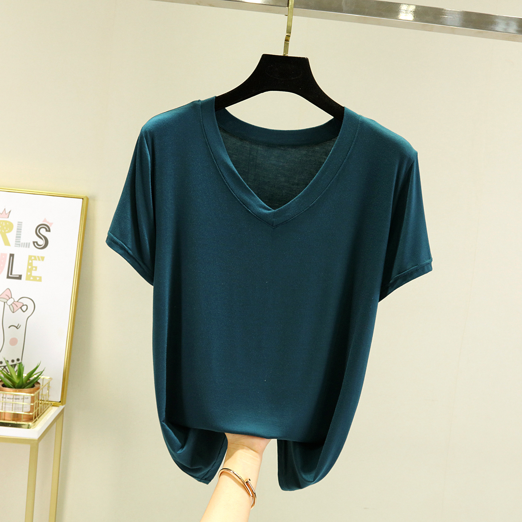 모달 뉴 여성용 반팔 여름 얇은 브이넥 티셔츠 루즈한 이너 슬리밍 올매치 반팔 탑 베이스 셔츠