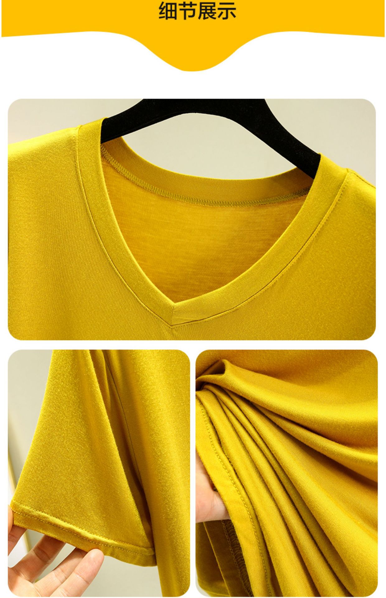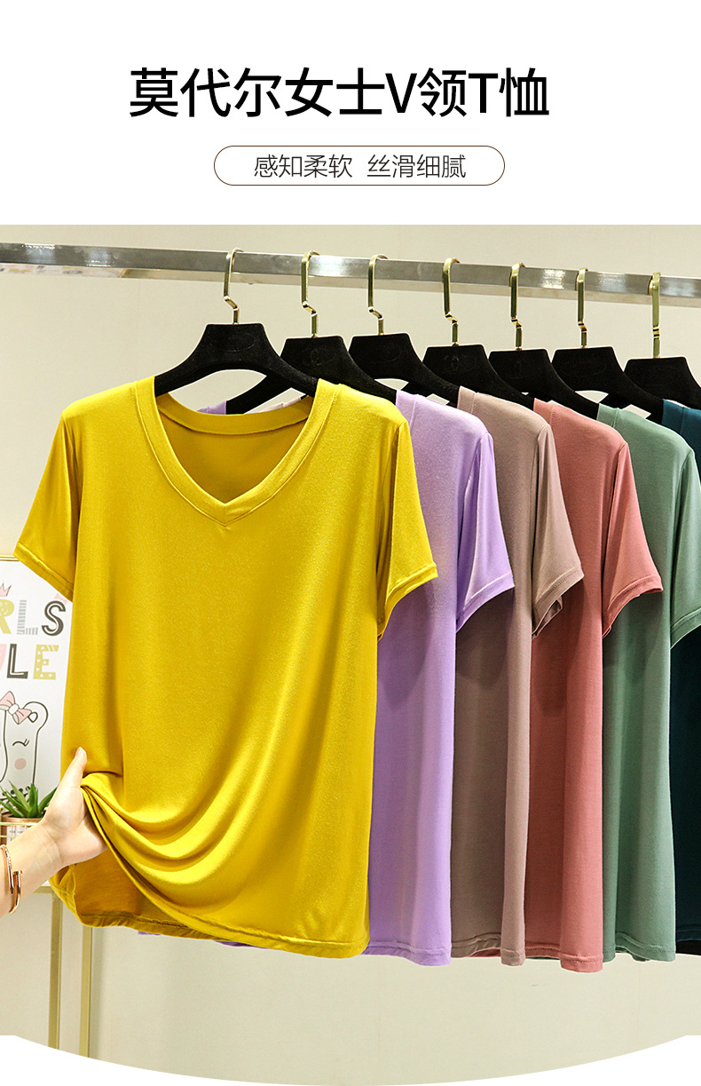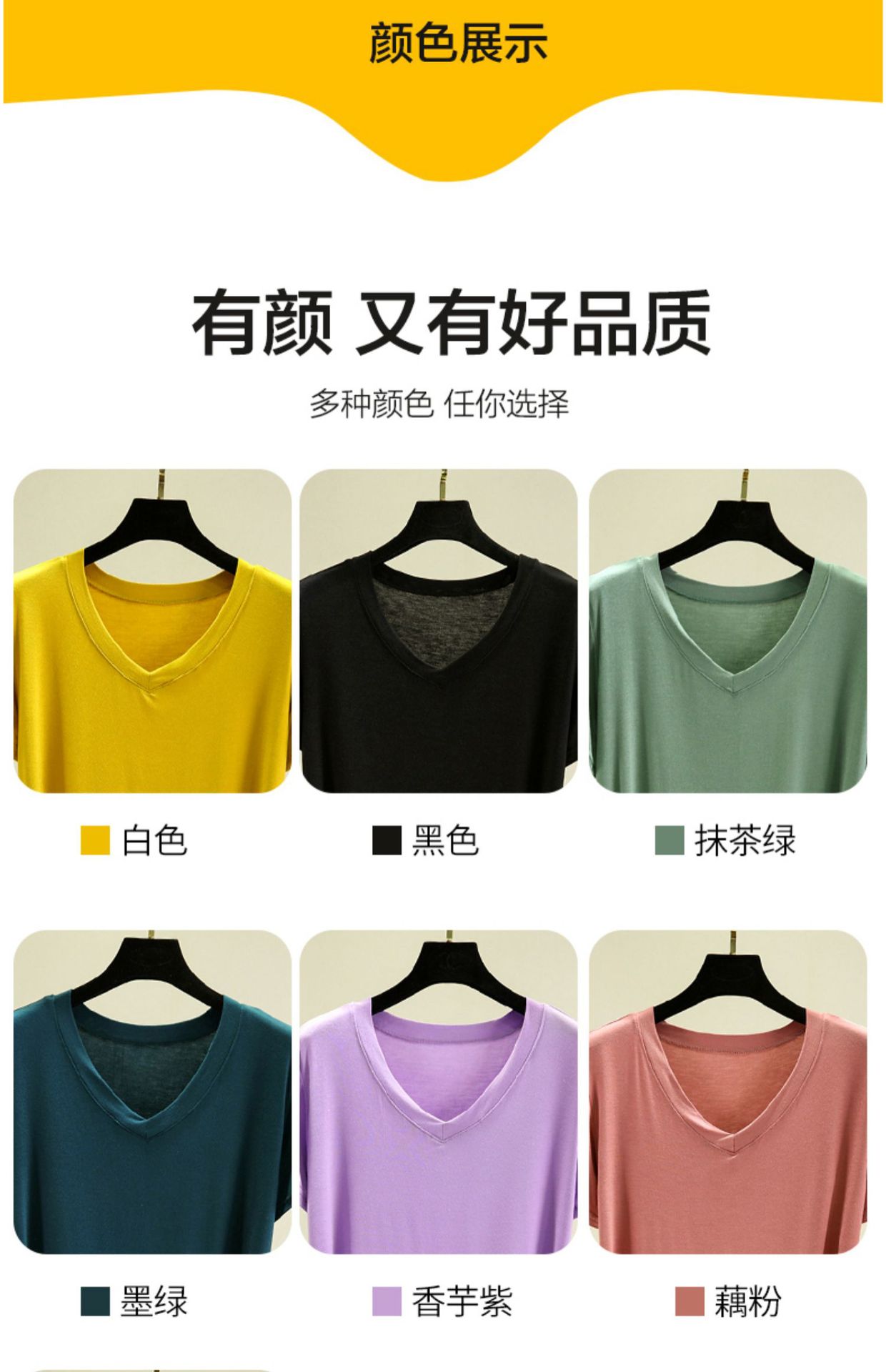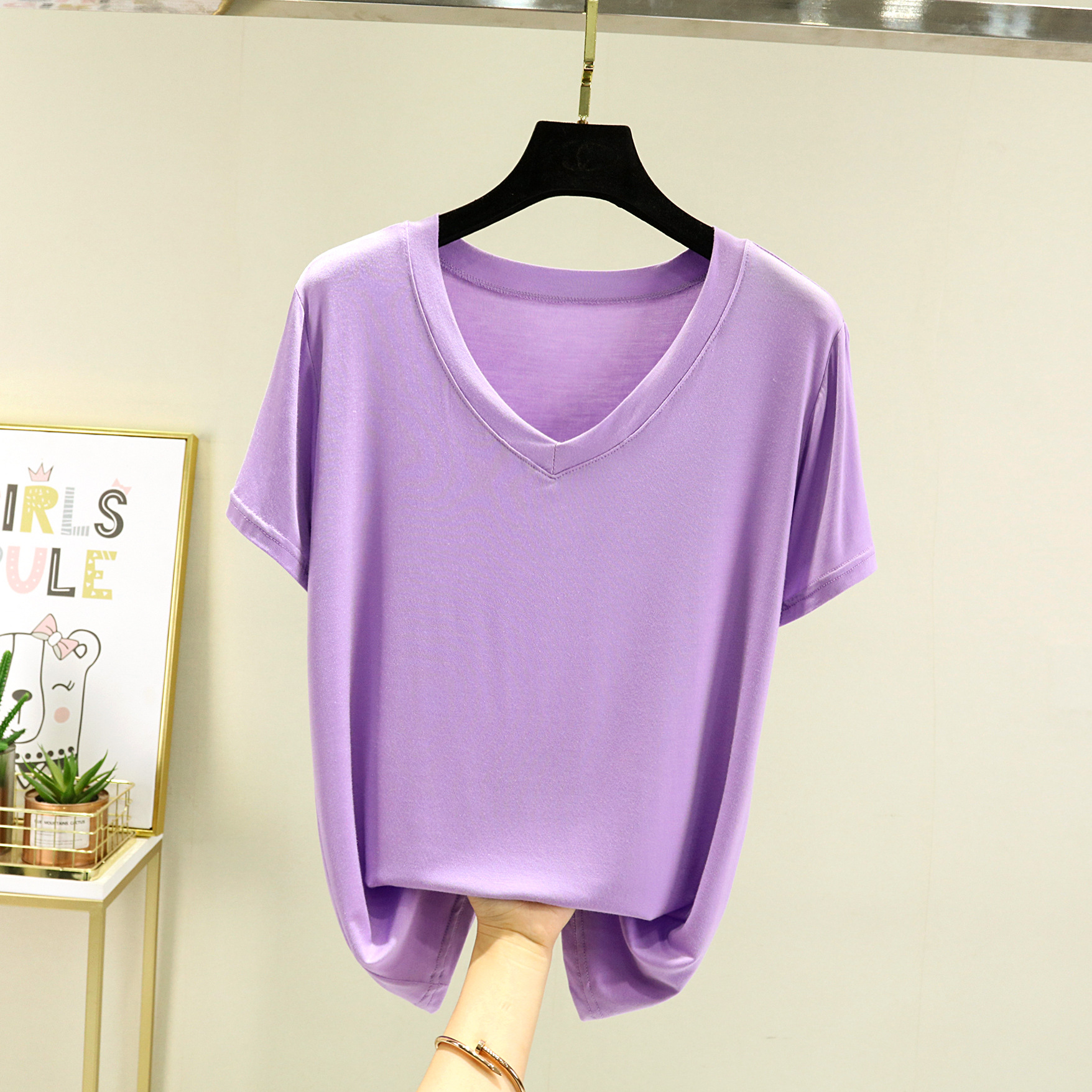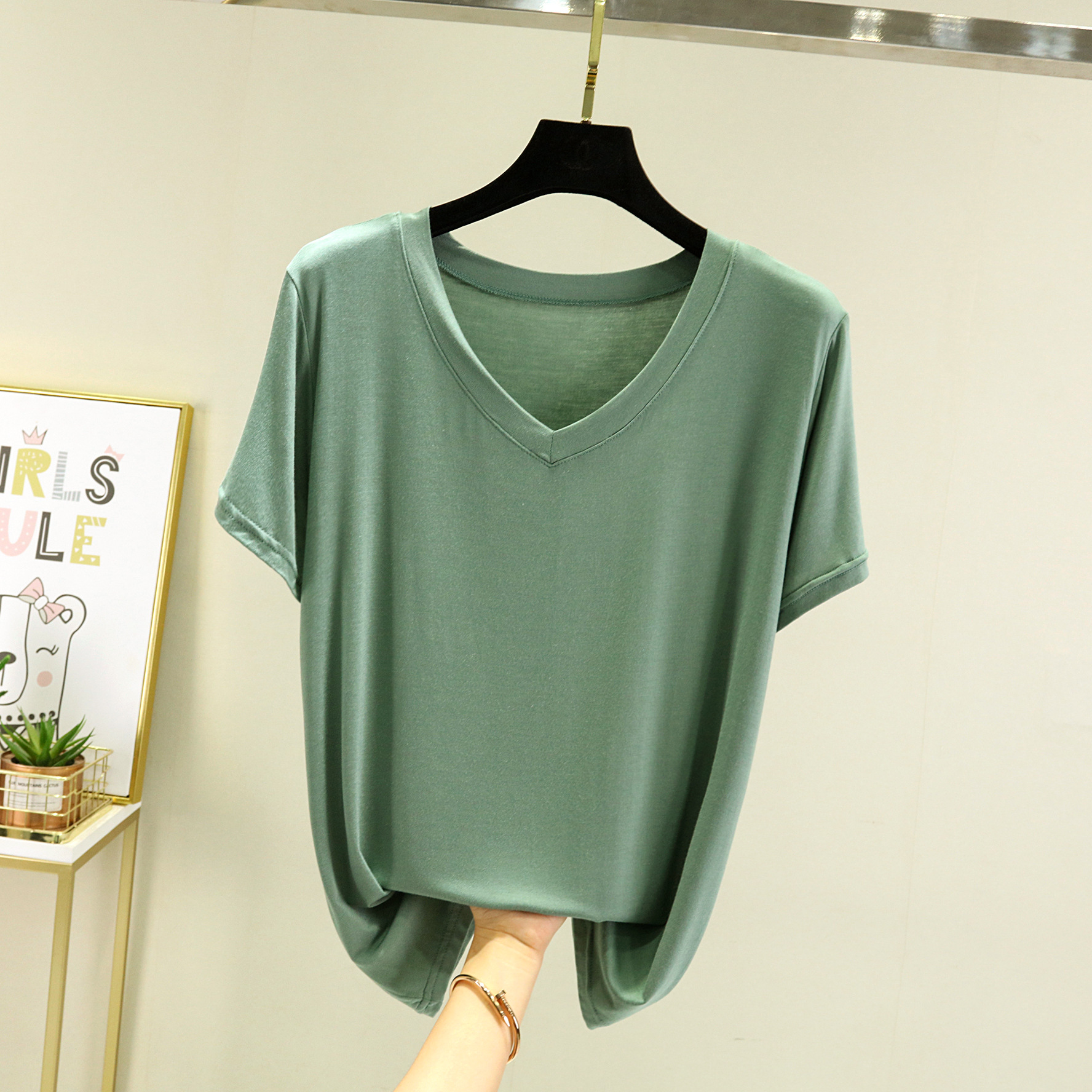 모달 뉴 여성용 반팔 여름 얇은 브이넥 티셔츠 루즈한 이너 슬리밍 올매치 반팔 탑 베이스 셔츠