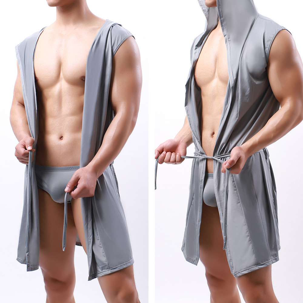 크로스 보더 유럽 스타일 남자의 목욕 가운 아이스 쿨 우유 실키 남자의 민소매 얇은 잠옷 속옷 세트