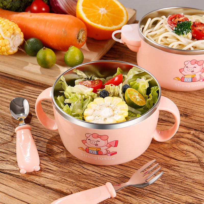 304 스테인레스 어린이 식기 316 단열 밥그릇 보완 식품 단열그릇 더블 귀 낙하 방지 아기 먹는 더블 그릇