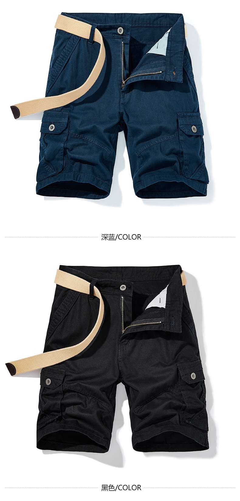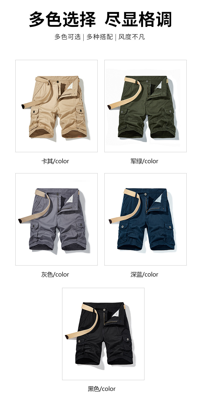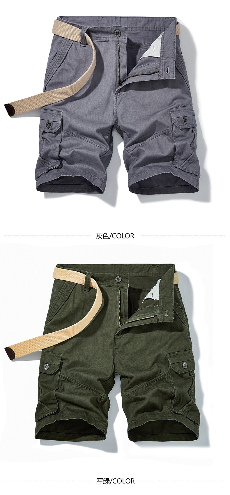 남성 여름 유럽풍 작업복 반바지 순면 루즈핏 큰 사이즈 5부 바지 남성용 다중 포켓 큰 사이즈 다중 포켓