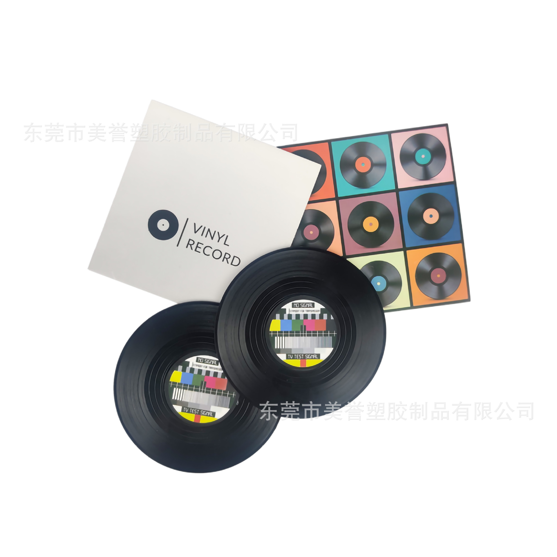 热销6片装创意黑胶唱片隔热垫环保防滑垫
