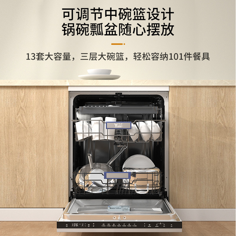 독립 풀 인레이 터치 스크린 유리 도어 식기 세척기 세척 및 이온을 실버 통합 열풍 건조 저장 13 세트를 쉽게 얻을 수 있습니다