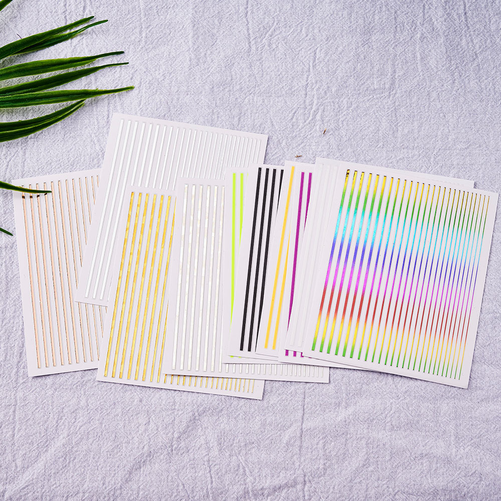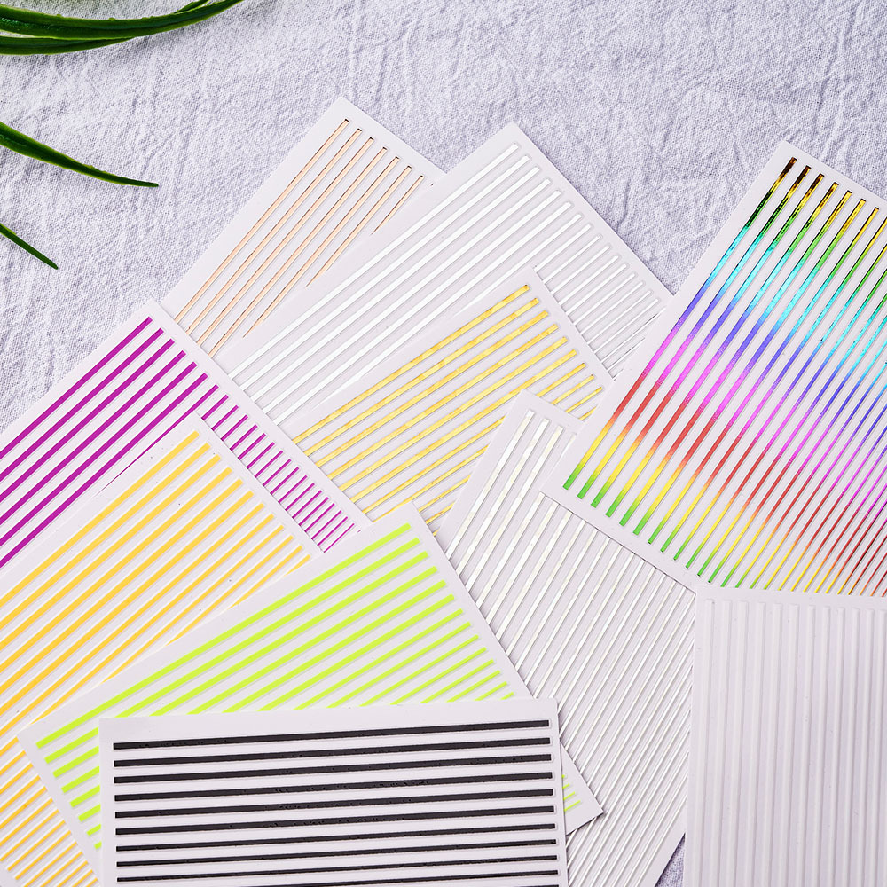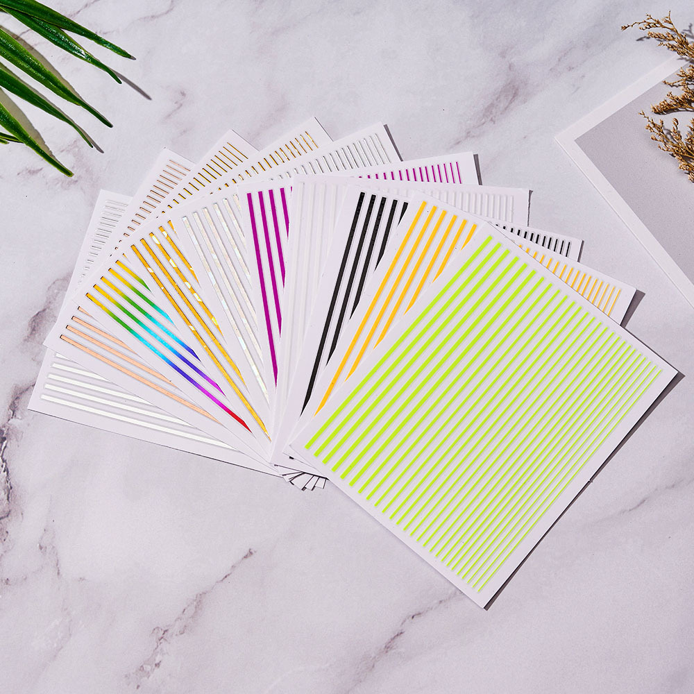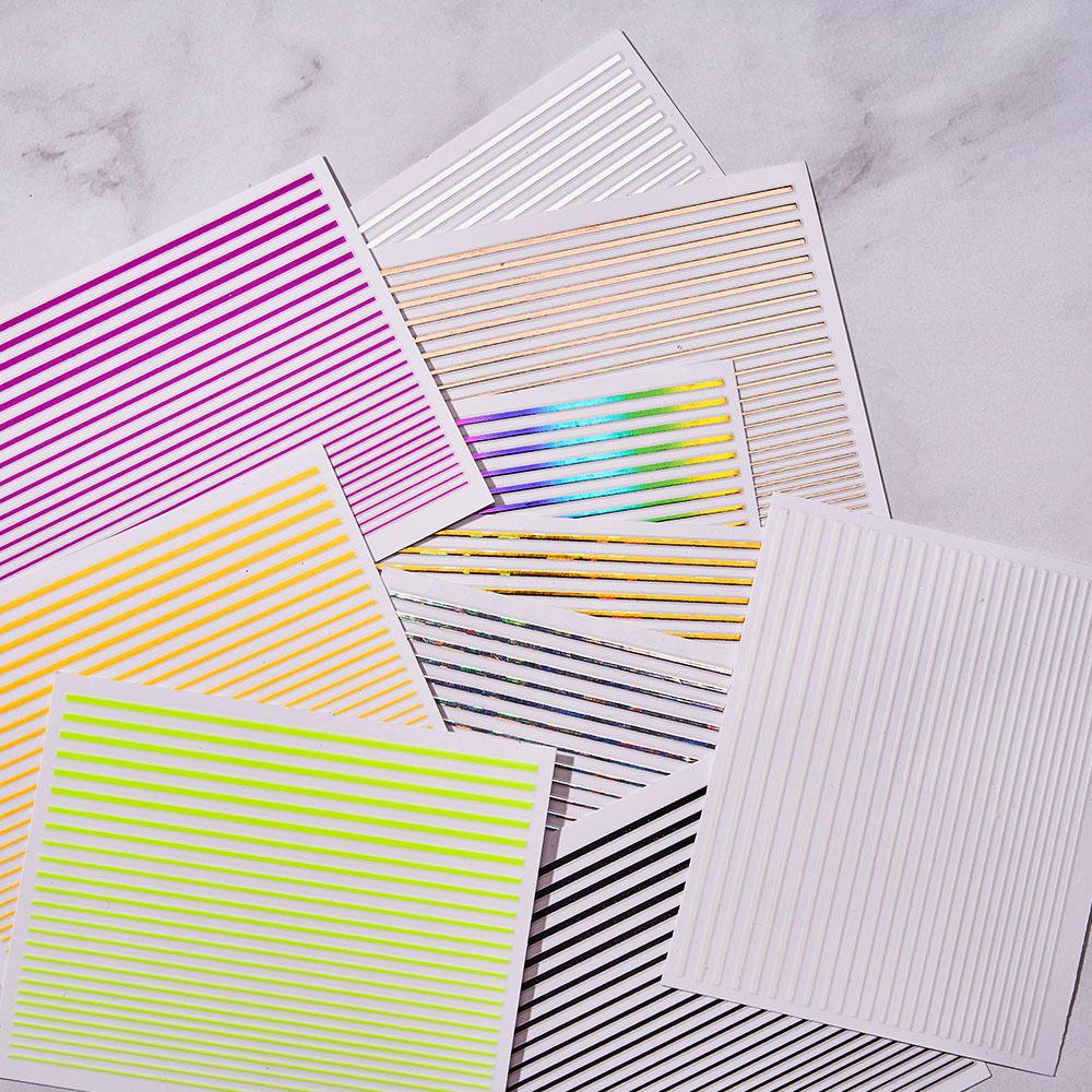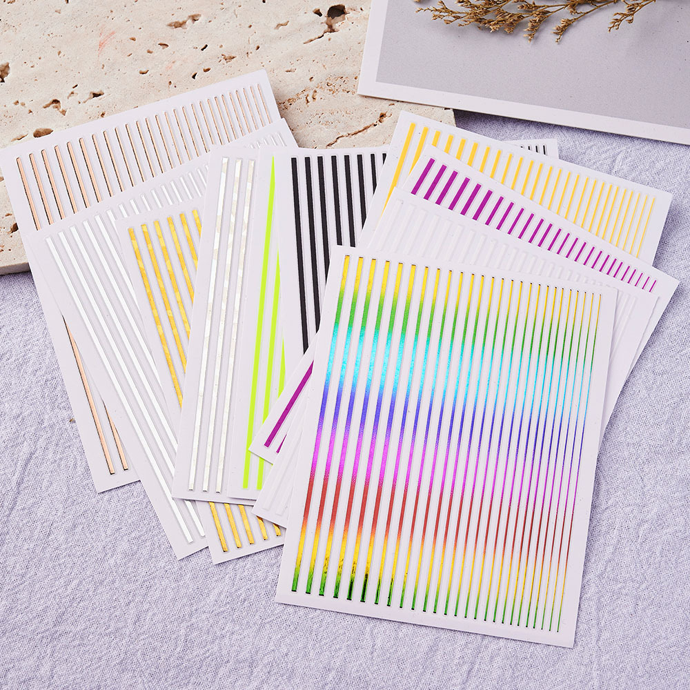 국경을 넘는 새로운 다채로운 라인 네일 아트 스티커 접착 자체 접착 스트립 네일 패치 세로 줄무늬 네일 아트 장식