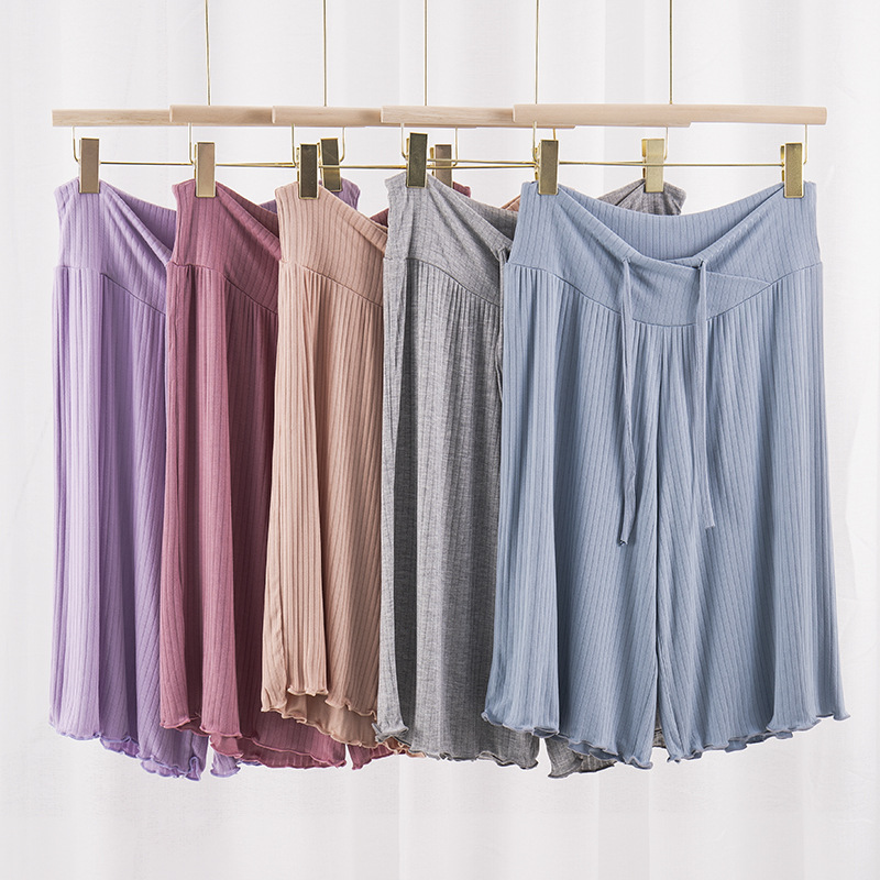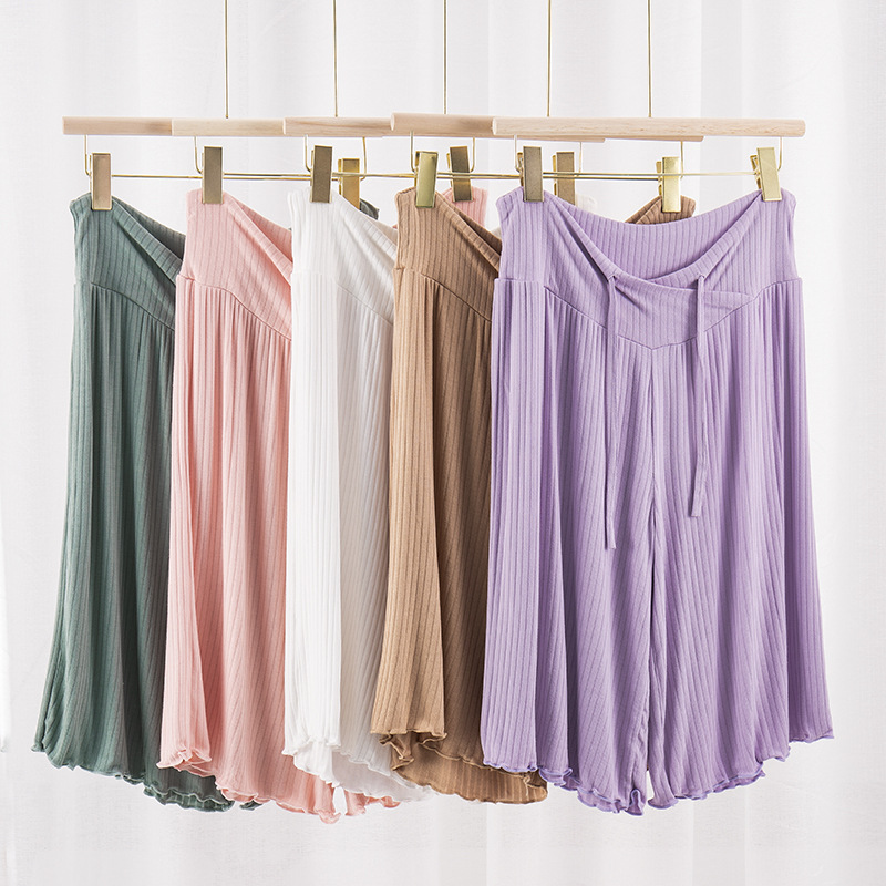 임산부 바지 느슨한 편안한 통기성 바지 여름 홈 에어컨 바지 느슨한 와이드 레그 바지 여성용 홈 바지