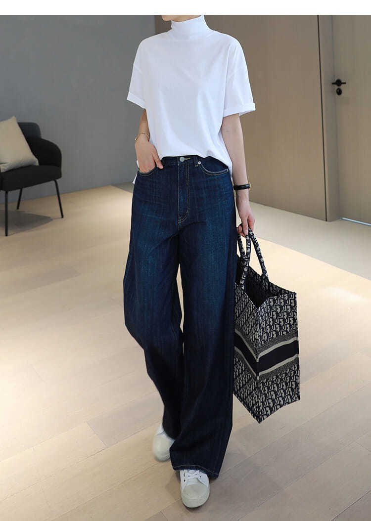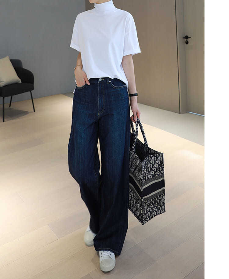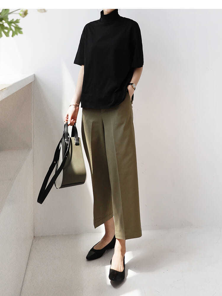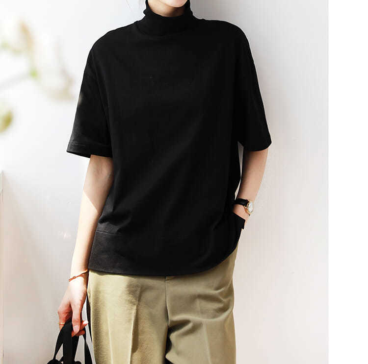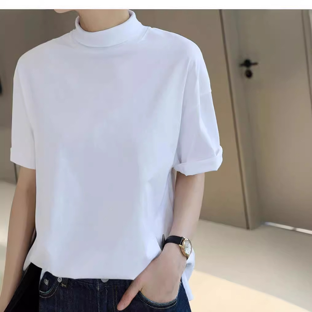 2026 여름 반팔 패셔너블한 하프넥 캐주얼 루즈핏 티셔츠 여성용 한국 스타일 단색 학생 상의