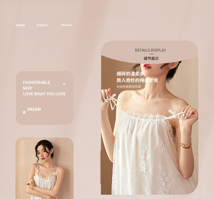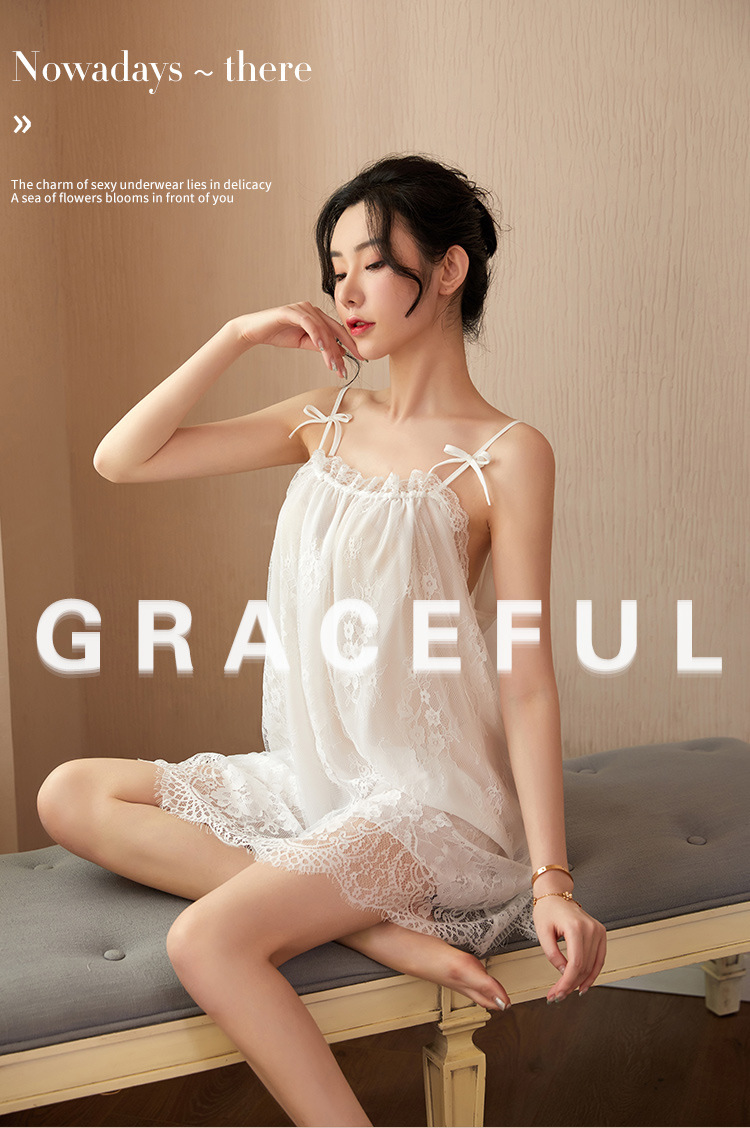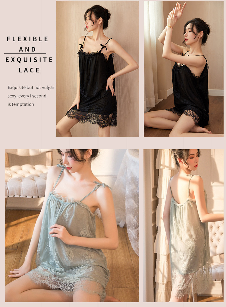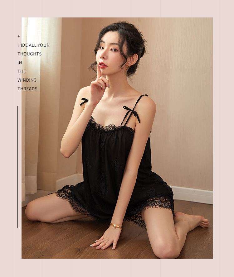 新款性感吊带睡裙女夏 蕾丝性感睡衣情趣内衣系带薄款家居服
