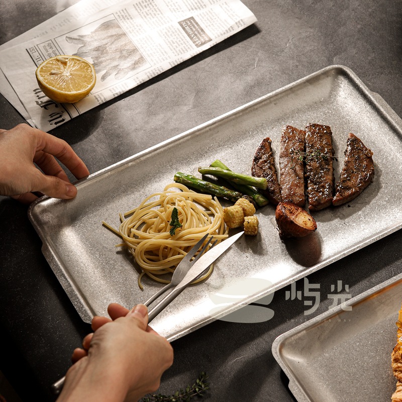Yuguang 복고풍 식기 직사각형 접시 서양 식당 스테이크 접시 바베큐 가게 창조적 인 향수 수건 접시 제조 업체 직접 공급