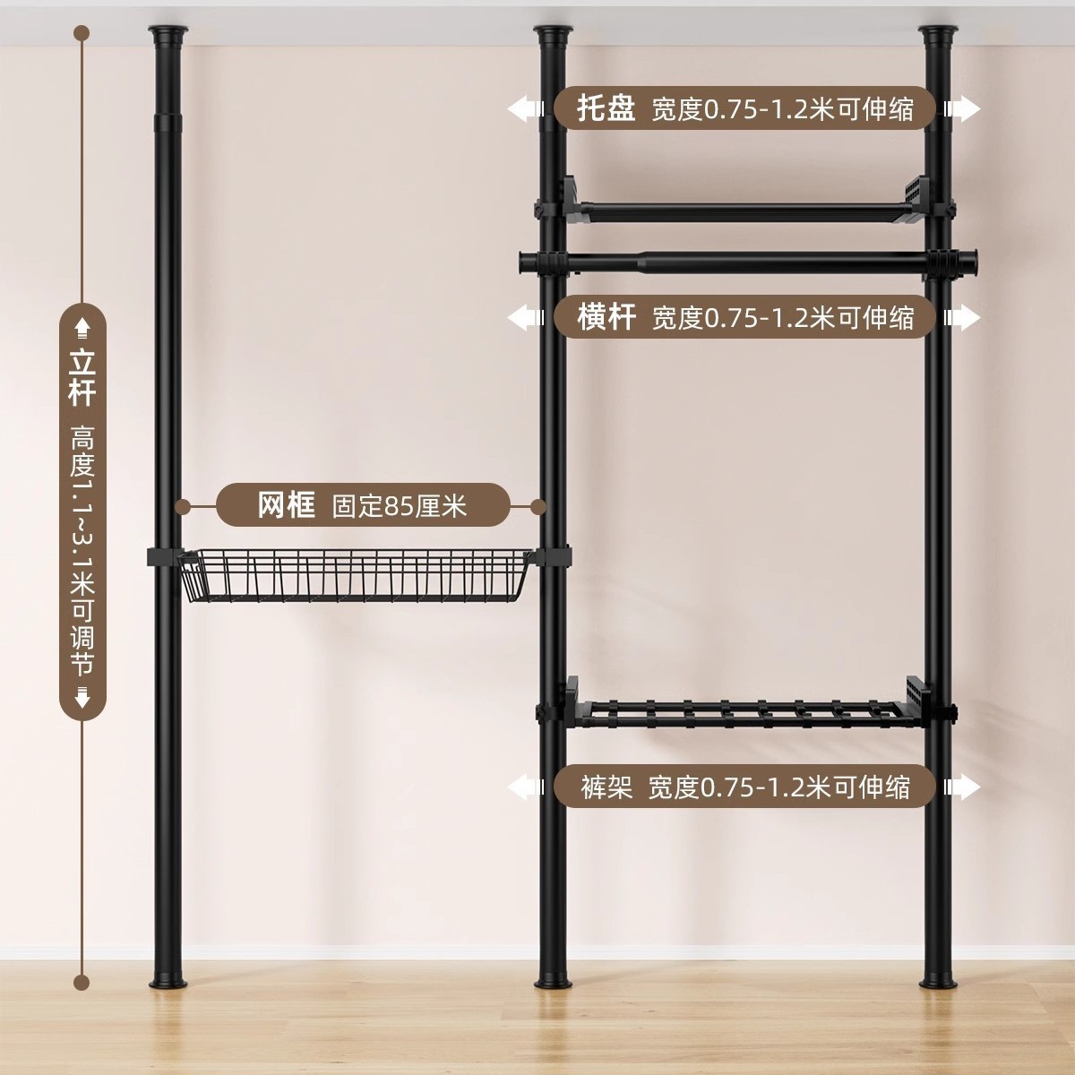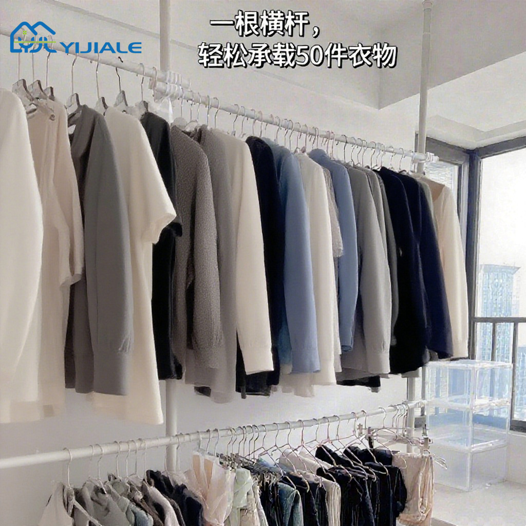 옷걸이 스탠드, 바닥형 옷걸이, 가정용 무타공 발코니 신축봉 건조대, 옷걸이 스탠드, 바닥형 가정용