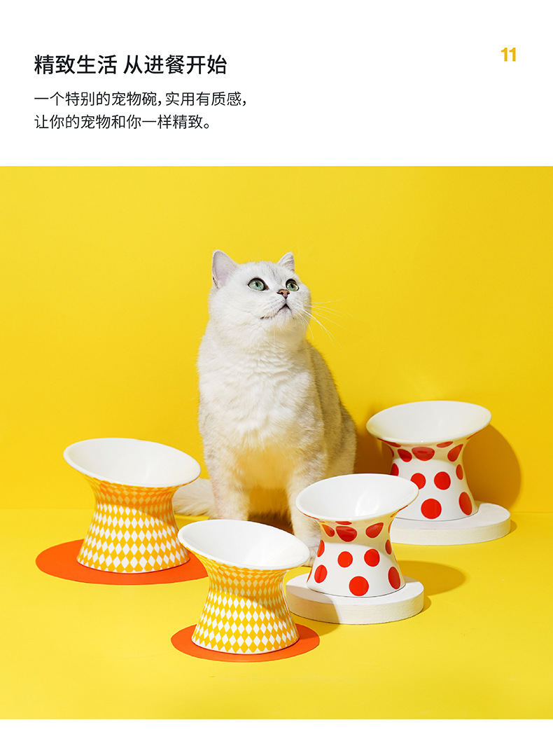 Zeze 고양이 그릇 세라믹 노크 방지 높은 발 더블 그릇 음식 그릇 개 그릇 고양이 마시는 그릇 보호 경추 음료 용품