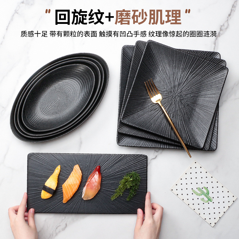 블랙 멜라민 바베큐 요리 레스토랑 특선 도자기 플라스틱 냄비 직사각형 쇠고기 접시 식기 도매