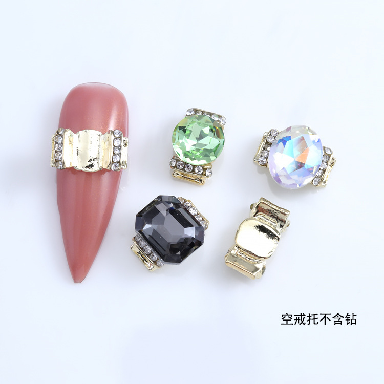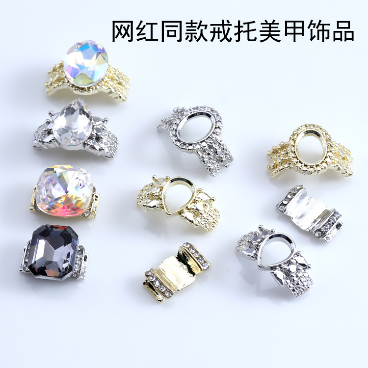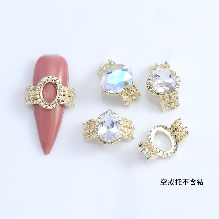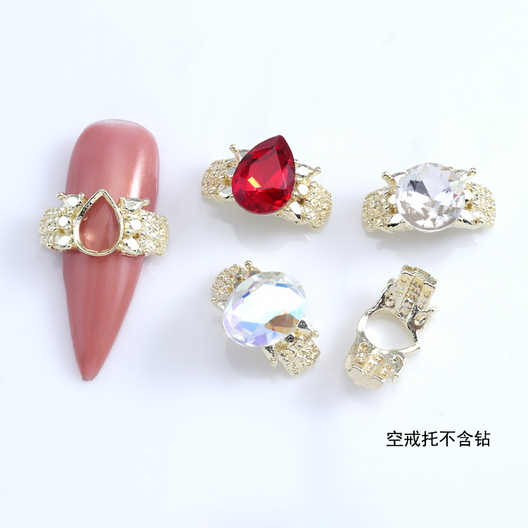 네일 아트 하이 세트 합금 보석 도매 일본 라이트 럭셔리 링 물방울 타원형 나비 날개 드릴 네일 장식