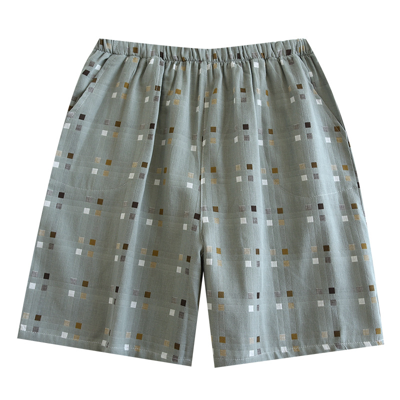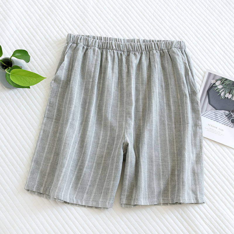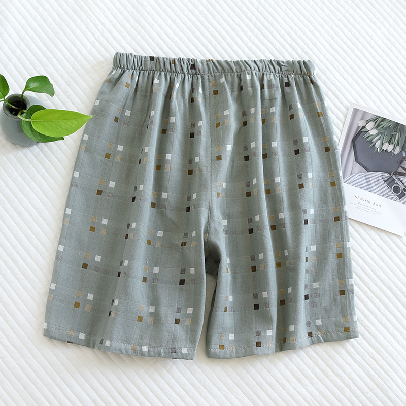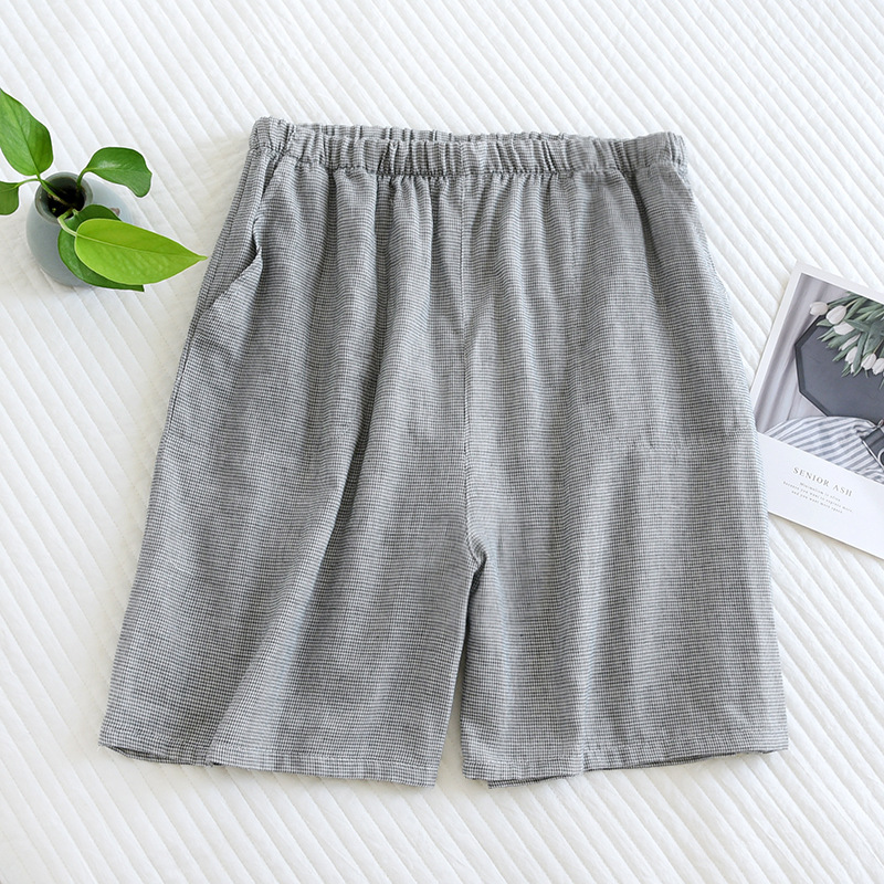 코튼 거즈 남성용 파자마 바지 여름 모든 면 더블 거즈 반바지 일본식 격자 무늬 비치 팬츠 캐주얼 하프 팬츠
