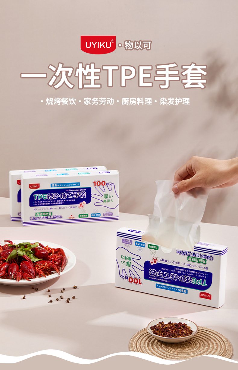 UYIKU 다기능 일회용 PE 장갑 업그레이드 두꺼운 노출 가능 식품 등급 가정용 주방 요리 장갑
