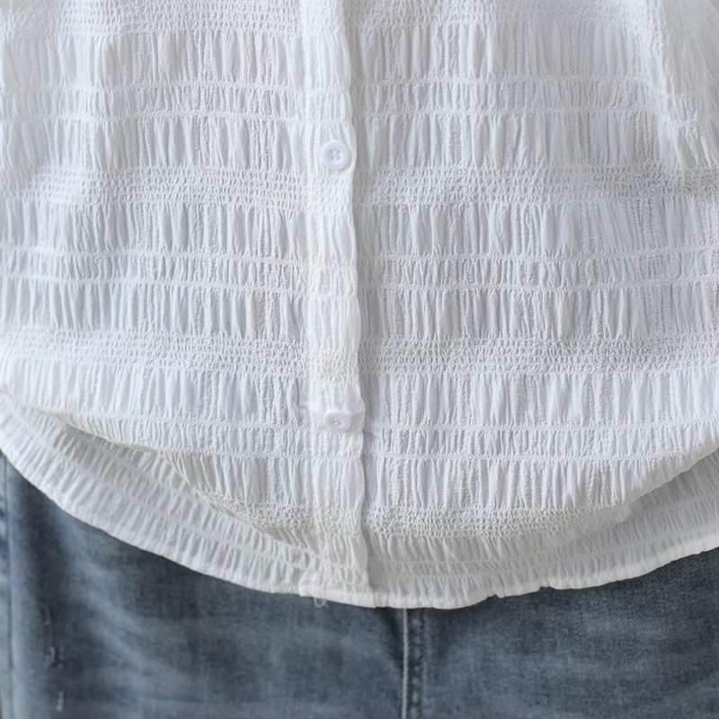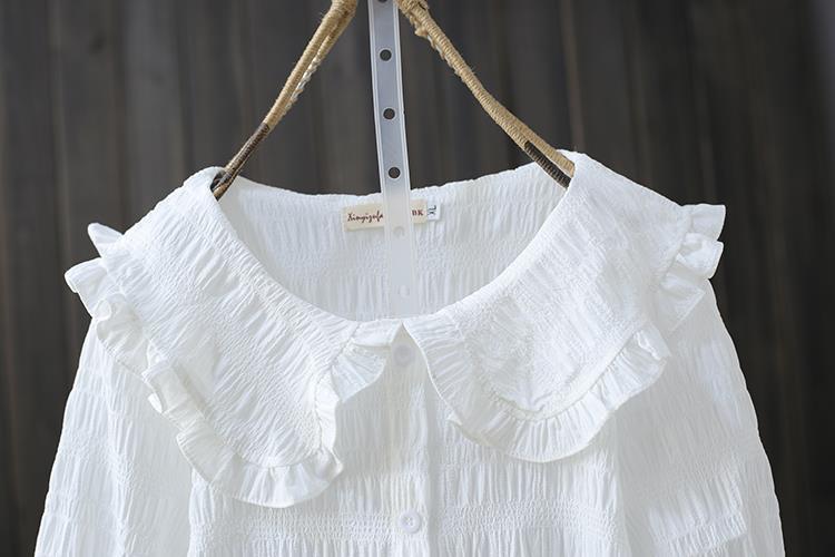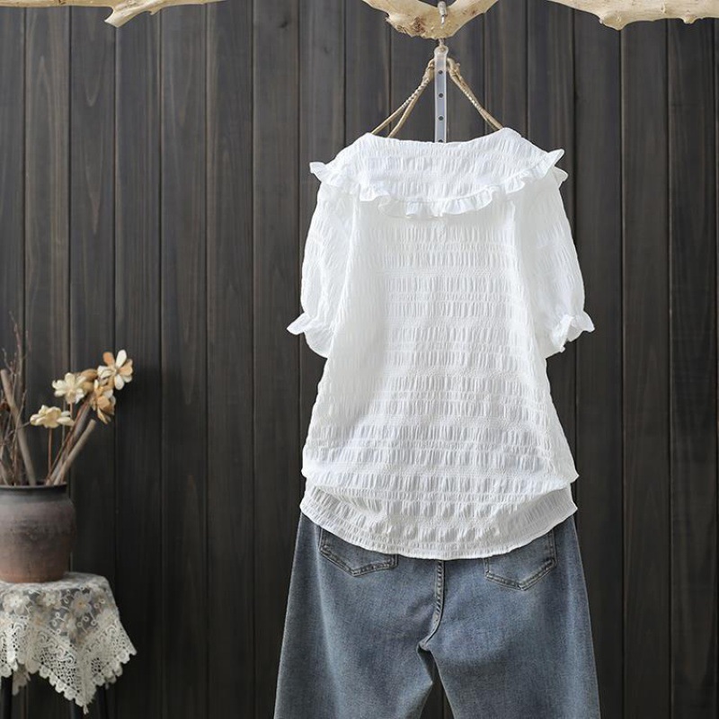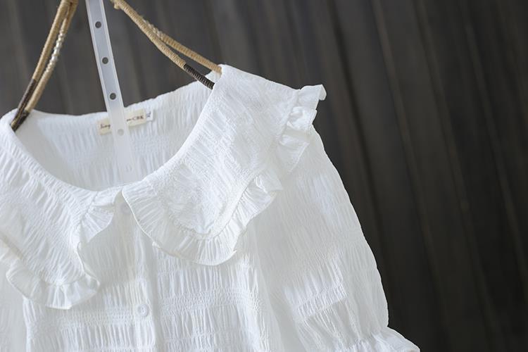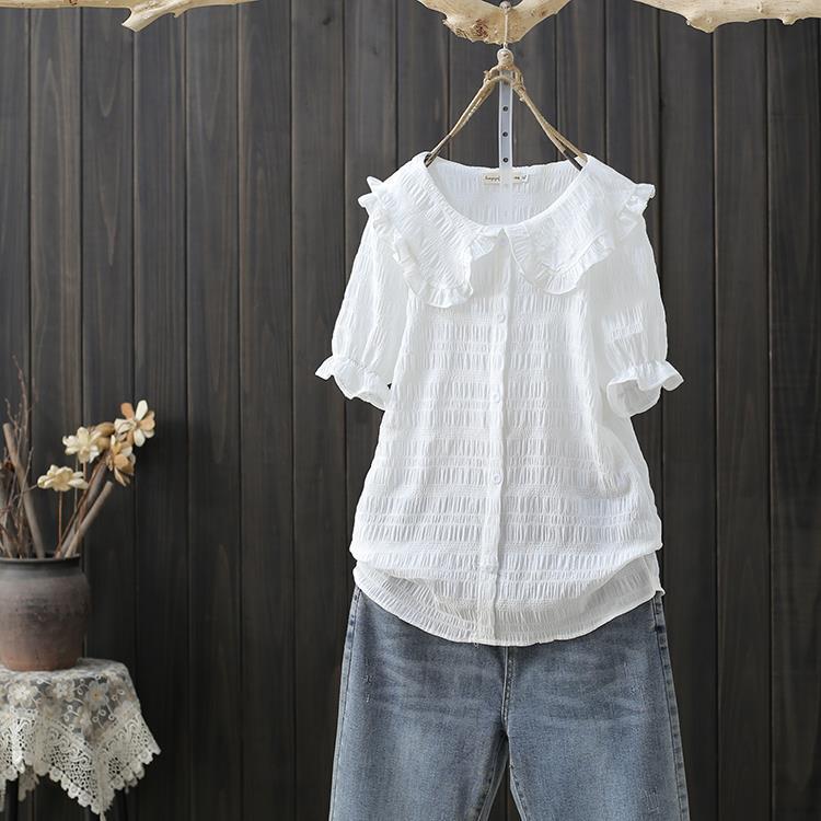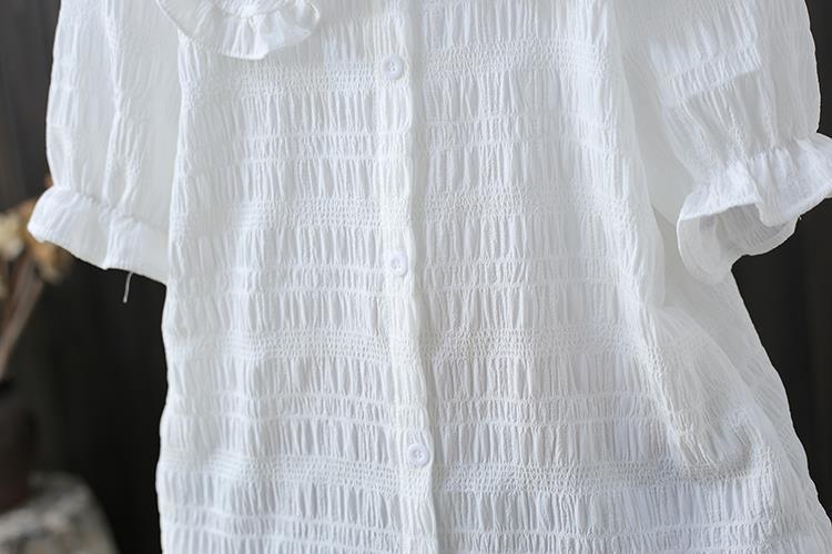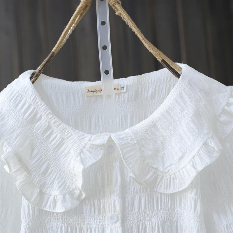 여름 플러스 사이즈 200kg 쉬폰 셔츠 프릴 프렌치 버블 슬리브 퍼플 인형 칼라 셔츠 여성용 스위트 셔츠