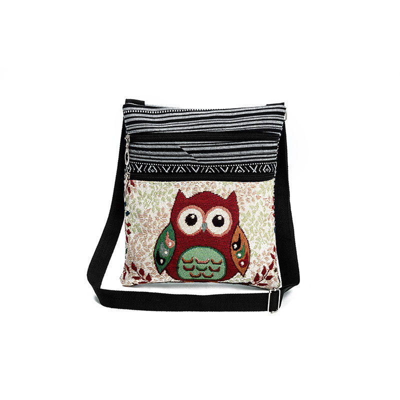 文艺旅游景点民族特色单肩布包女 创意款可爱猫头鹰提花女斜挎包
