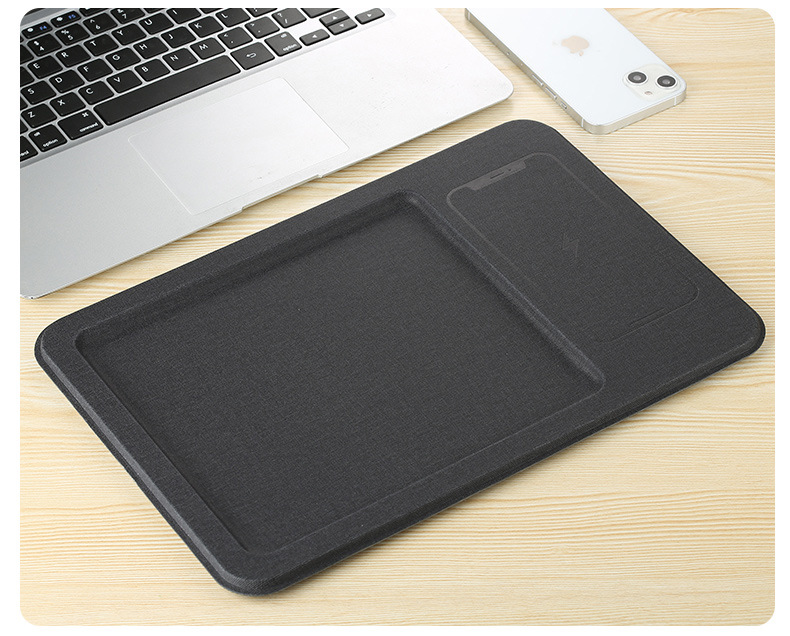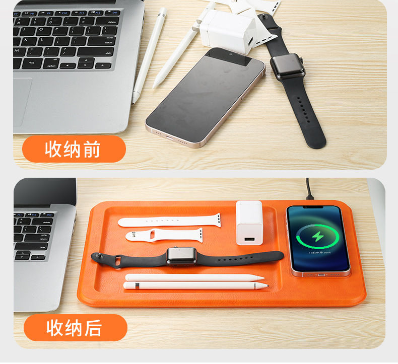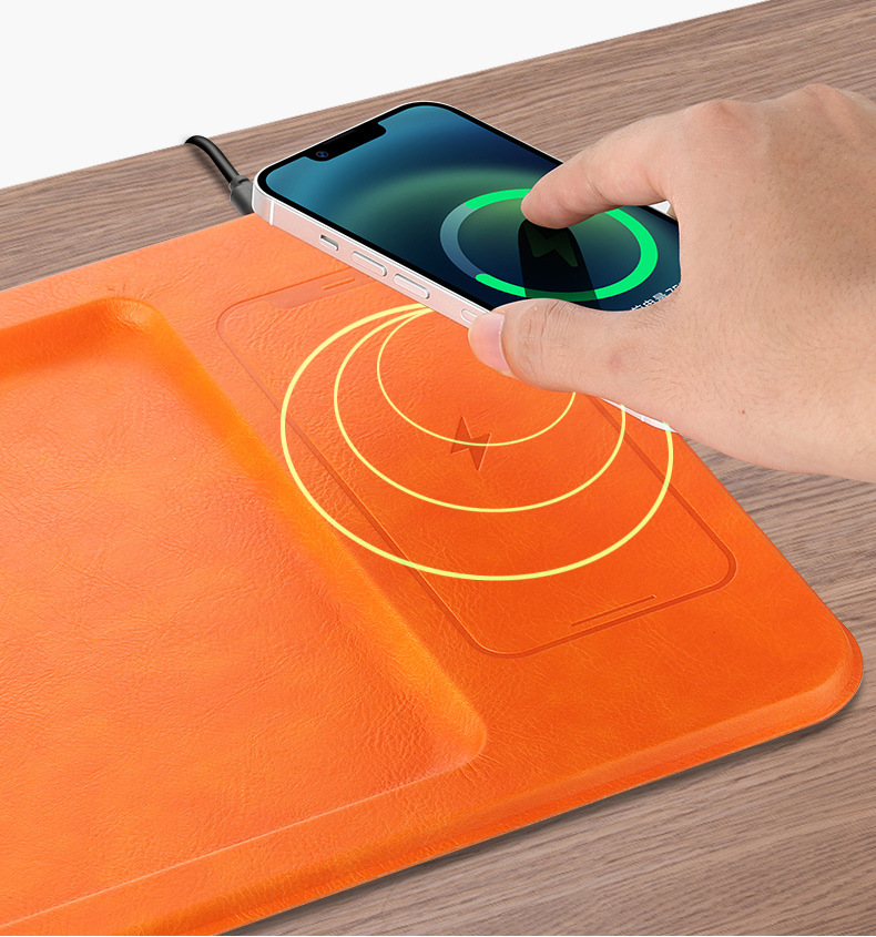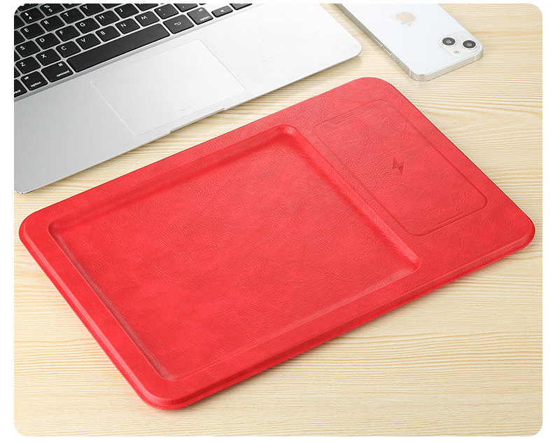 15W 가죽 무선 충전기 제조업체 재고 마우스 패드 무선 충전기 데스크탑 스토리지 쓰리인원 충전기