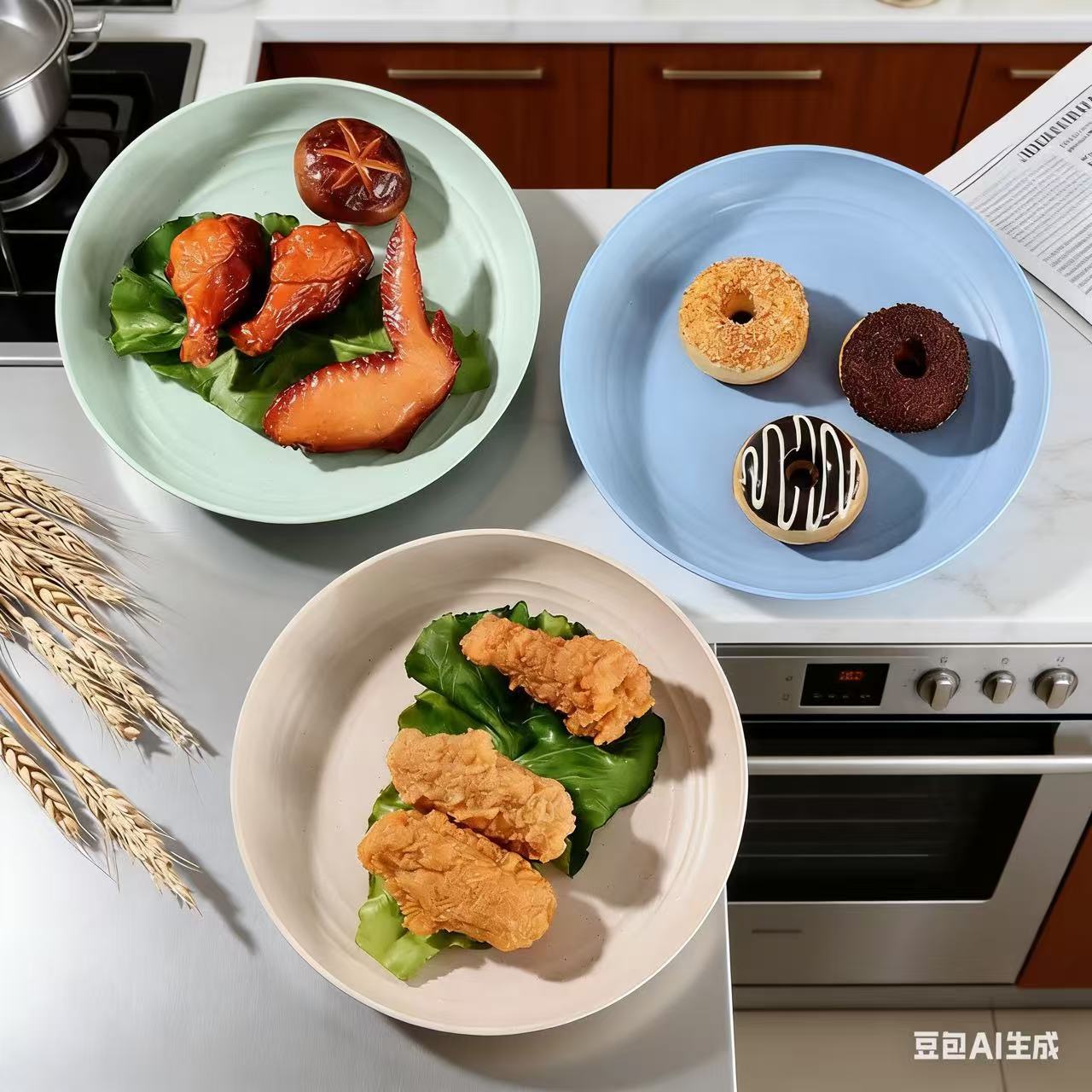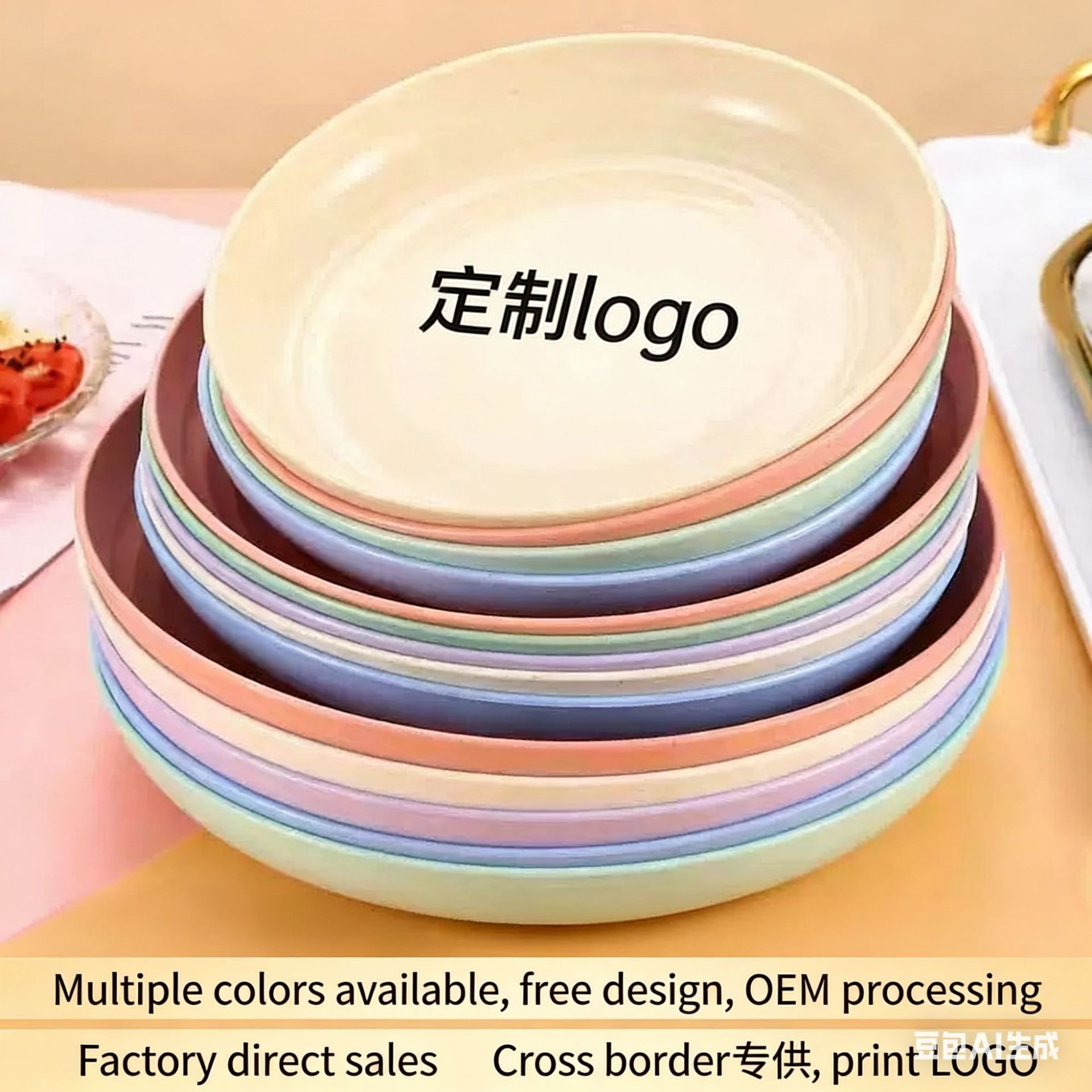 멀티 모델 플라스틱 디스크 가정용 과일 접시 거실 스낵 플레이트 밀 밀짚 식기 세트 로고