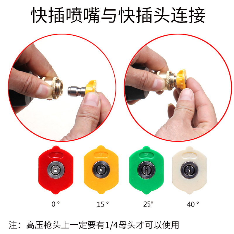 스테인레스 스틸 1/4 빠른 연결 노즐 고압 청소기 선형 팬 색상 노즐 세차 물총 헤드 액세서리