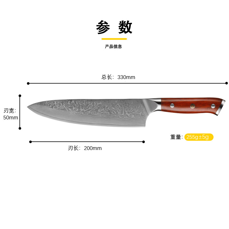 국경을 넘는 67겹 다마스커스 VG10강 8inch 셰프 나이프 황단나무 손잡이 슬라이싱 나이프 가정용 야채칼 공장
