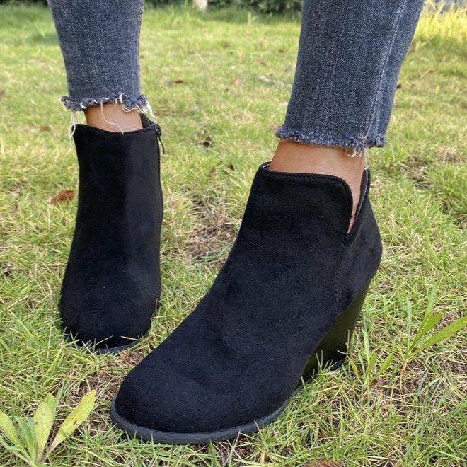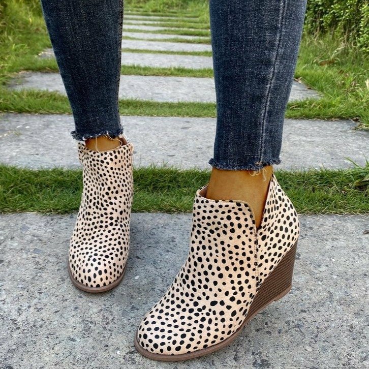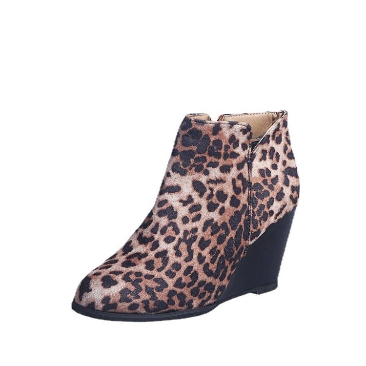 2022 여름 새로운 아마존 대외 무역 여성 싱글 부츠 플러스 사이즈 레오파드 무늬 사이드 지퍼 웨지 마틴 쇼트 부츠 여성