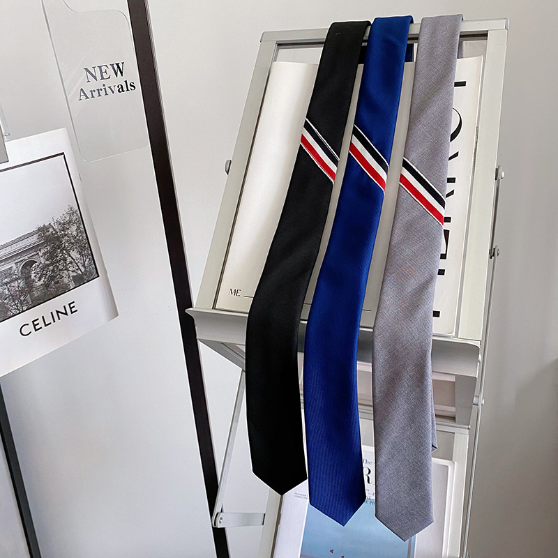 TB 3 색 리본 145cm 길이의 영국 회색 울 넥타이 남성 및 여성 정식 비즈니스 네이비 좁은 버전의 한국어 버전