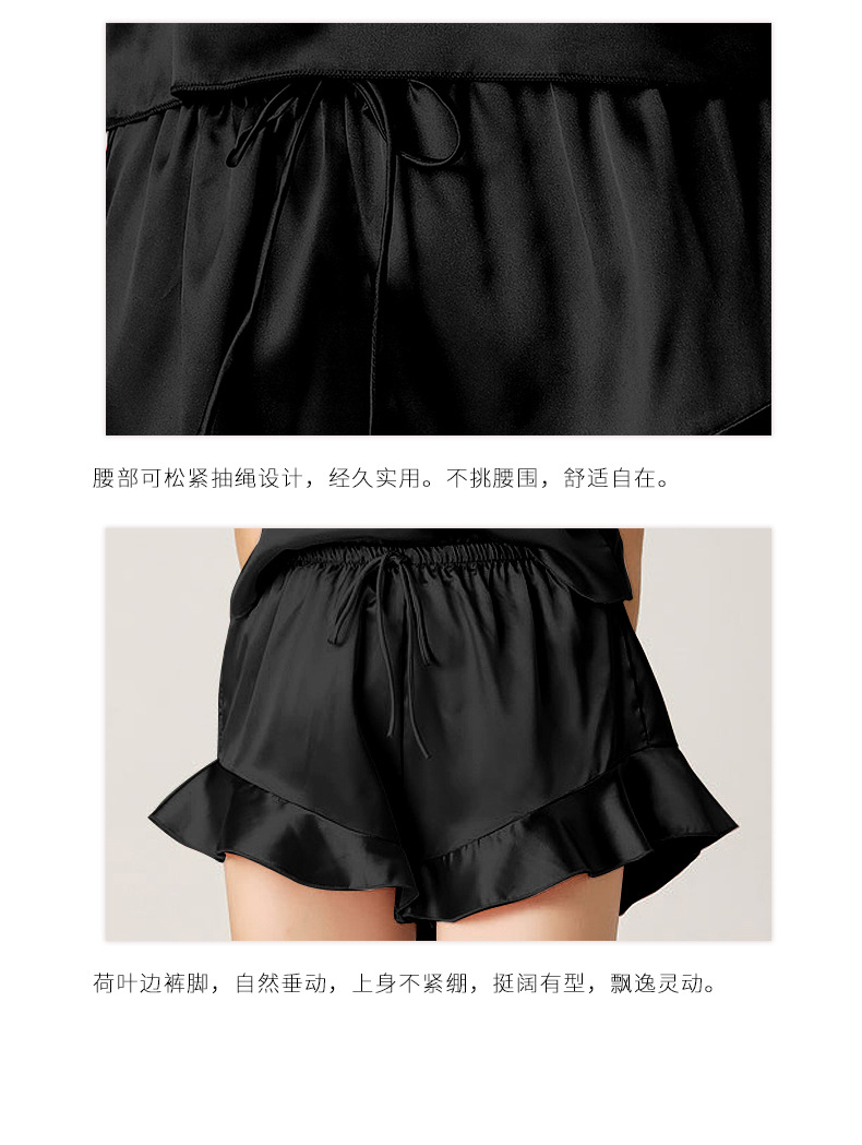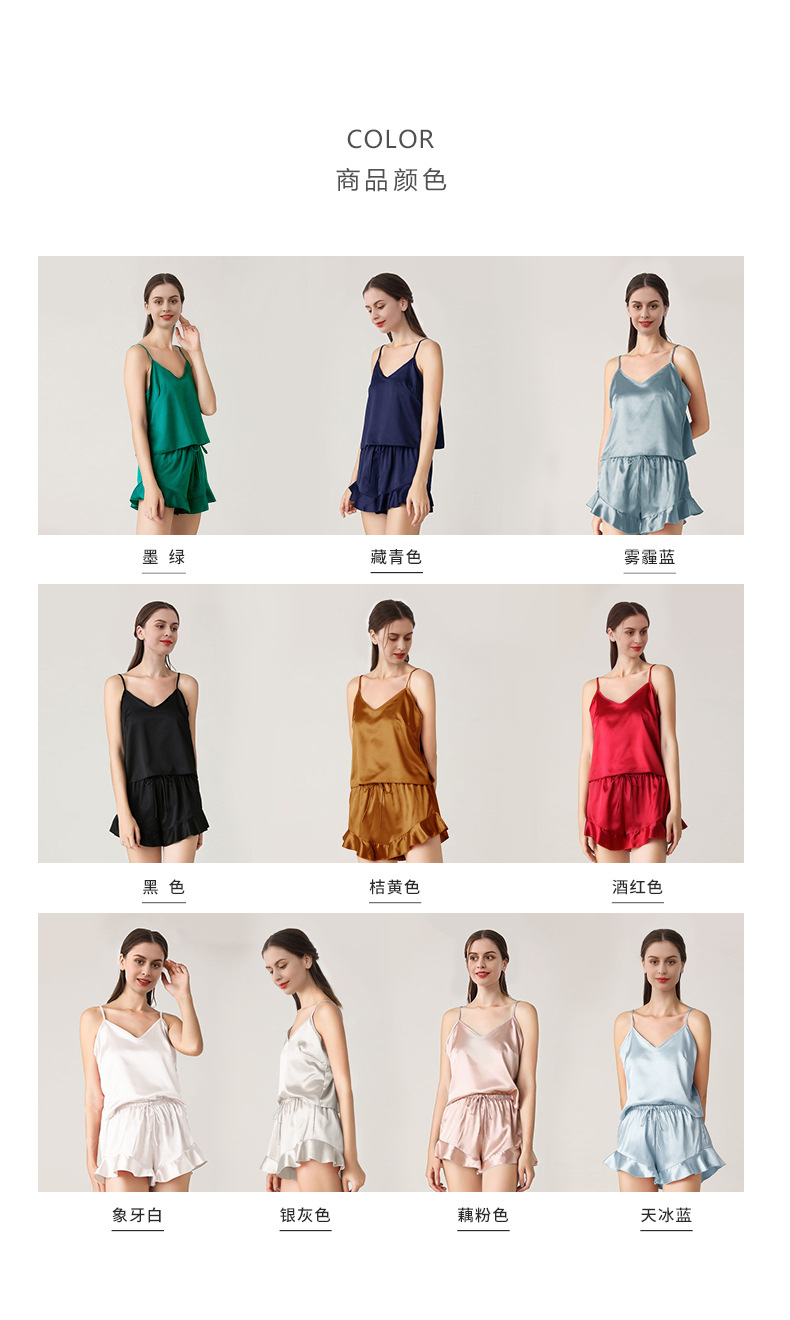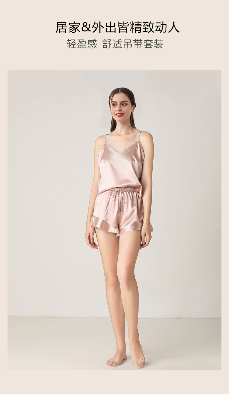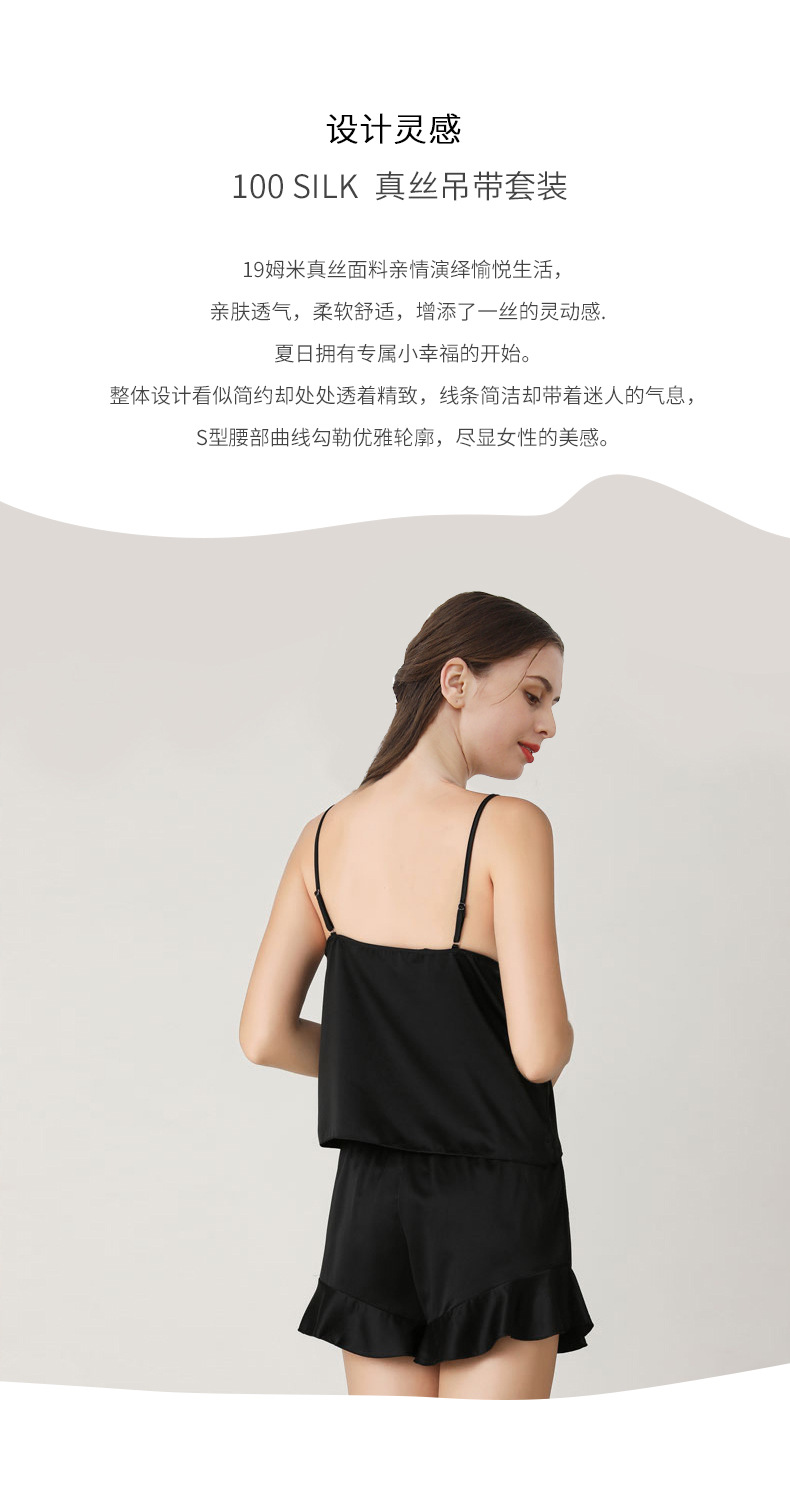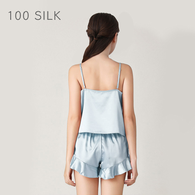 19 Mumi 헤비급 실크 잠옷 100% 뽕나무 실크 프릴 서스펜더 반바지 정장 여성의 섹시한 홈웨어